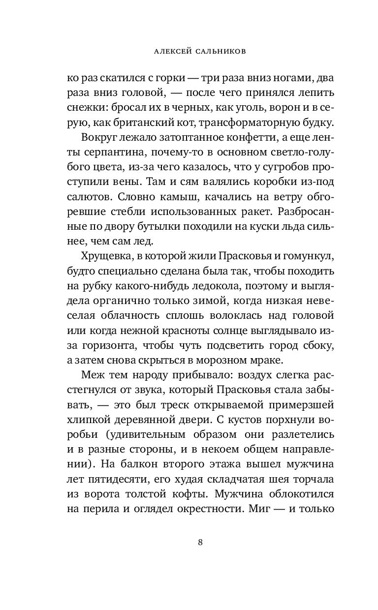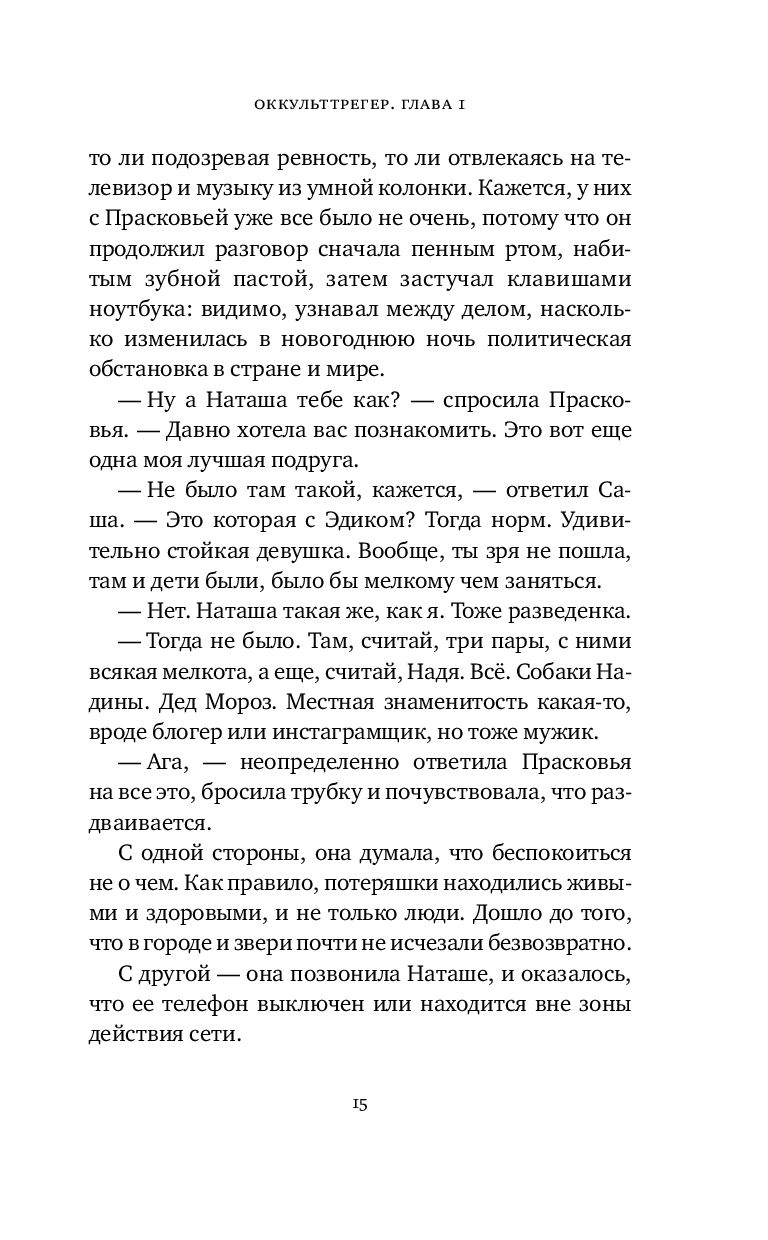 Новый роман Сальникова "Оккульттрегер" написан в жанре городского фэнтези. 2019 год, маленький уральский город. Оккульттрегеры – особые существа, чья работа – сохранять тепло в остывающих городах и быть связующим звеном между людьми, херувимами и чертями. Главная героиня Прасковья – как раз оккульттрегер. Ей пять сотен лет, она меняет внешность каждые четыре месяца и дорожит лишь гомункулом – своим спутником и помощником, принявшим вид ребенка. Но вдруг гомункулу начинает угрожать опасность…