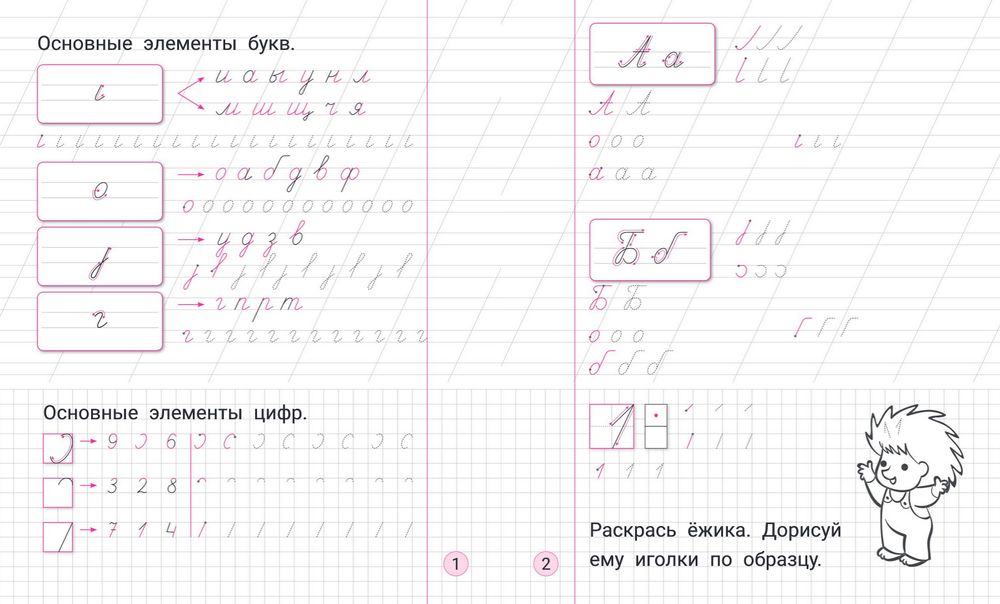 Издание поможет ребёнку научиться правильно писать цифры, а также усвоить состав чисел в пределах 10. Задание на поиск цифры в узорах поможет закрепить ее образ, а прописывание специально подобранных узоров будет способствовать развитию моторики, а также научит ребёнка ориентироваться в пространстве клеточки.