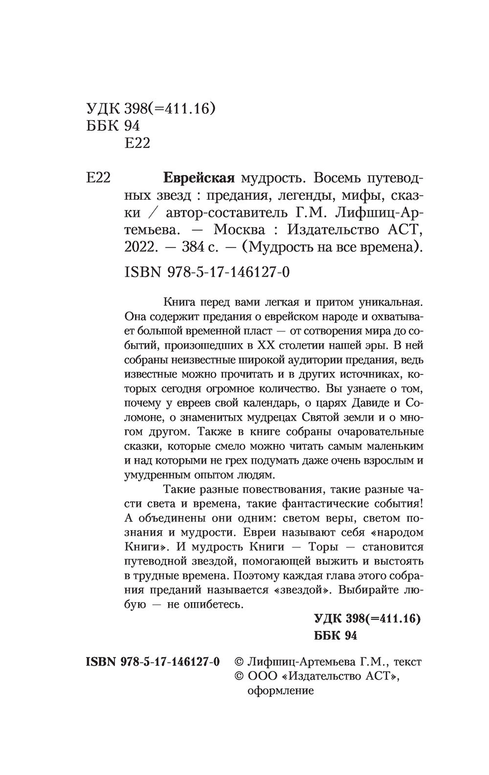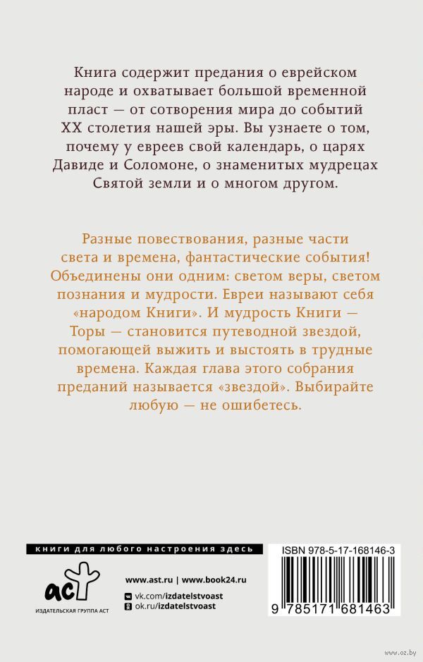 Такие разные повествования, такие разные части света и времена, такие фантастические события! А объединены они одним: светом веры, светом познания и мудрости. Евреи называют себя "народом Книги". И мудрость Книги – Торы – становится путеводной звездой, помогающей выжить и выстоять в трудные времена. Поэтому каждая глава этого собрания преданий называется "звездой". Выбирайте любую – не ошибетесь.
