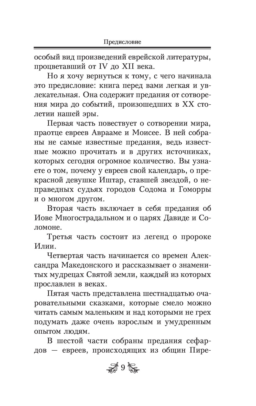 Книга перед вами легкая и увлекательная. Она содержит предания о еврейском народе и охватывает большой временной пласт – от сотворения мира до событий, произошедших в XX столетии нашей эры. В ней собраны не самые известные предания, ведь известные можно прочитать и в других источниках, которых сегодня огромное количество. Вы узнаете о том, почему у евреев свой календарь, о царях Давиде и Соломоне, о знаменитых мудрецах Святой земли и о многом другом. Также в книге собраны очаровательные сказки, которые смело можно читать самым маленьким и над которыми не грех подумать даже очень взрослым и умудренным опытом людям.