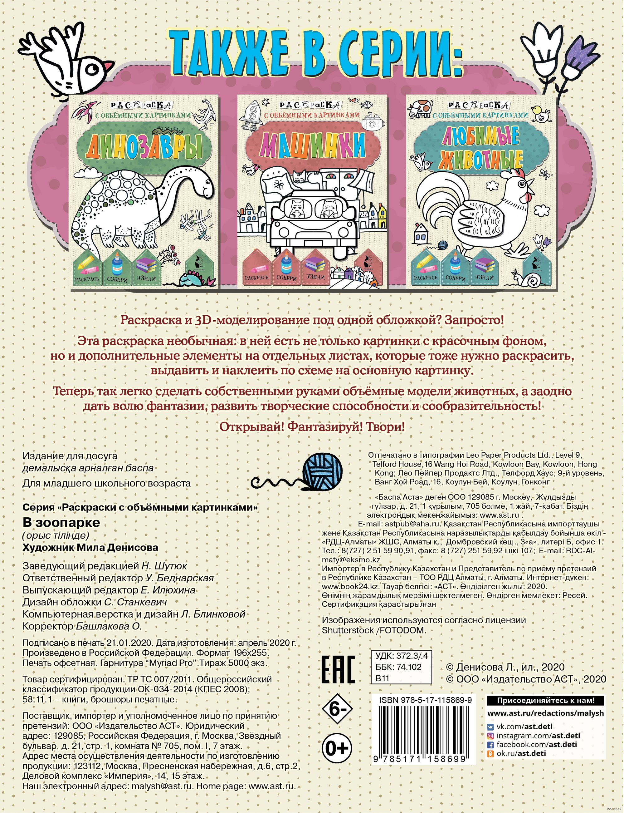 Раскраска и 3D-моделирование под одной обложкой? Запросто! Эта раскраска необычная: в ней есть не только картинки с красочным фоном, но и дополнительные элементы на отдельных листах, которые тоже нужно раскрасить, выдавить и наклеить по схеме на основную картинку. Теперь так легко сделать собственными руками объемные модели животных, а заодно дать волю фантазии, развить творческие способности и сообразительность! Открывай! Фантазируй! Твори!
