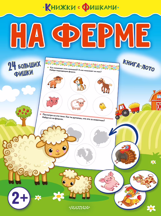 Игровая книга для самых маленьких составлена по принципу лото, в котором ребёнок выполняет задания подбирая фишки с ответами. Задания помогают развить мышление и зрительное восприятие малыша. Они составлены так, что ребёнок учится систематизировать и рассуждать, а также получает знания об окружающем мире.