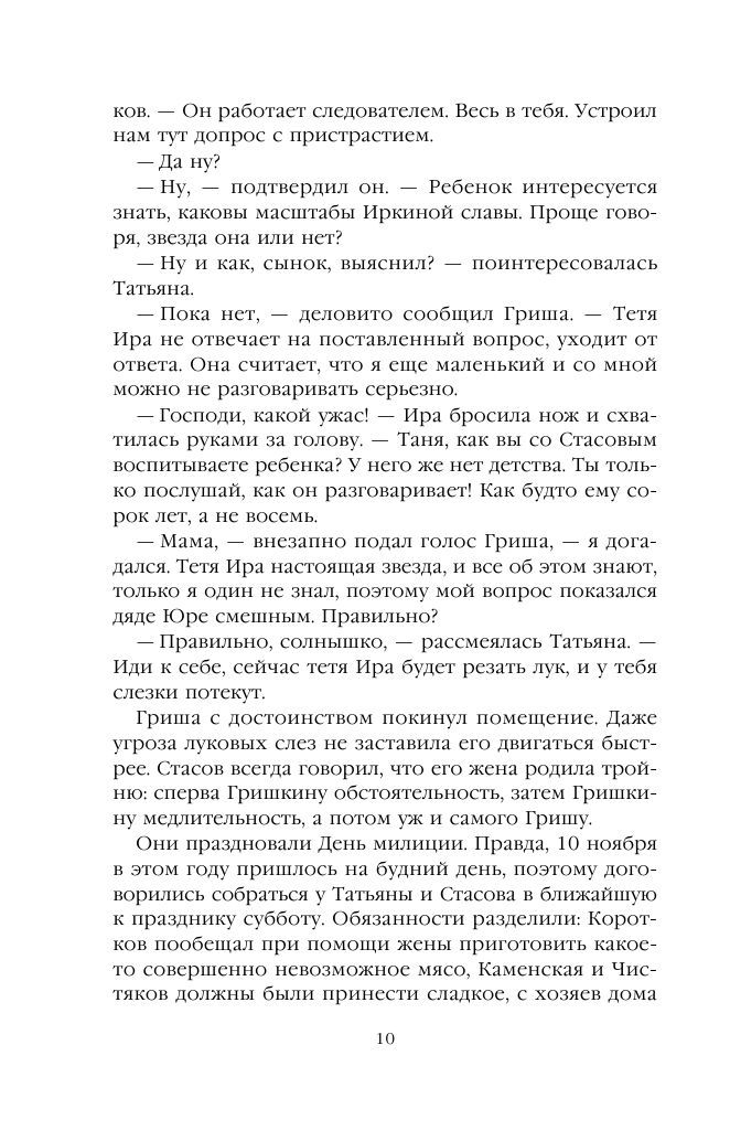 Маринина - это класса в жанре. Я счастлива, что могу читать по-руский и не надо ждать переводы, что бы встретиься с Каменской или Дорошина. Я попробовала читать и другие русские авторы с этого жанра - да извините, но никак не получается, когда сравнивать с тонкой психологий человеческих характеров, которой можно найти только у Марининой. Я даже думаю о Коменской, как о реальном человеке, которой живет в Москве, работет, страдает, думает и т.д.