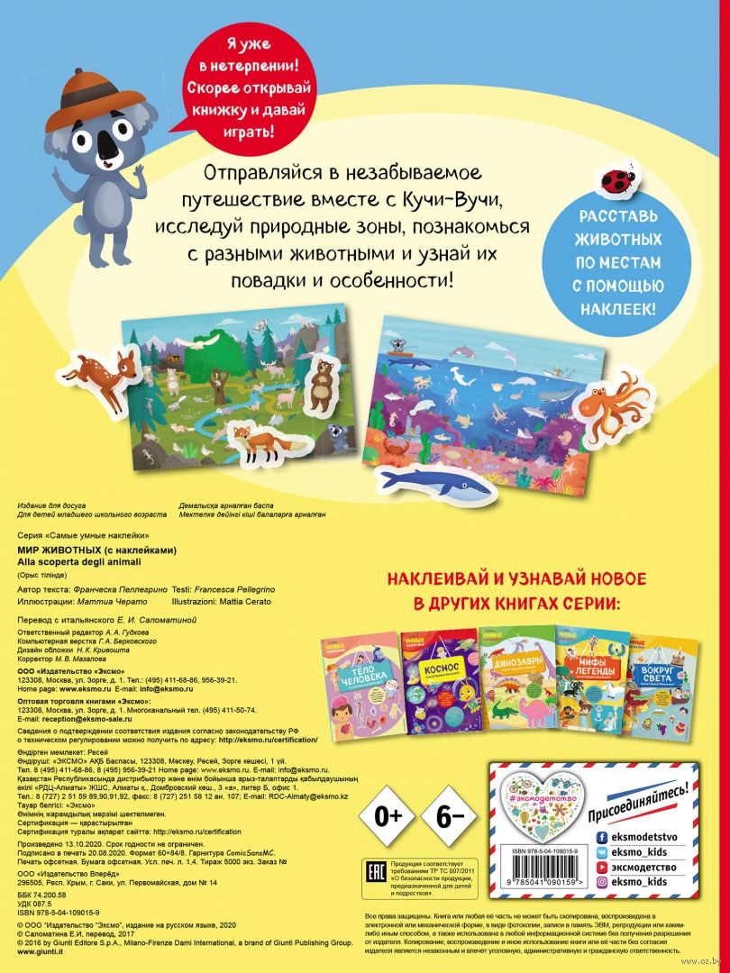 Сколько живых существ обитает на нашей планете! Познакомьте ребенка с миром животных! С этой книгой малыш сможет узнать, какие животные обитают в разных местностях, как они называются, а также познакомиться с интересными фактами о них. Некоторые животные разбежались со страниц книги, поэтому вашему малышу придется подыскать для потеряшек подходящие наклейки – это отличная тренировка для памяти, внимания и мелкой моторики. Целых семь красочных разворотов, веселый персонаж-гид и два листа с наклейками позволят совершить увлекательную экскурсию по нашей планете. Животные джунглей, саванны, пустыни и многих других ареалов ждут знакомства с вашим малышом. Пускай узнавать новое станет легко и весело!