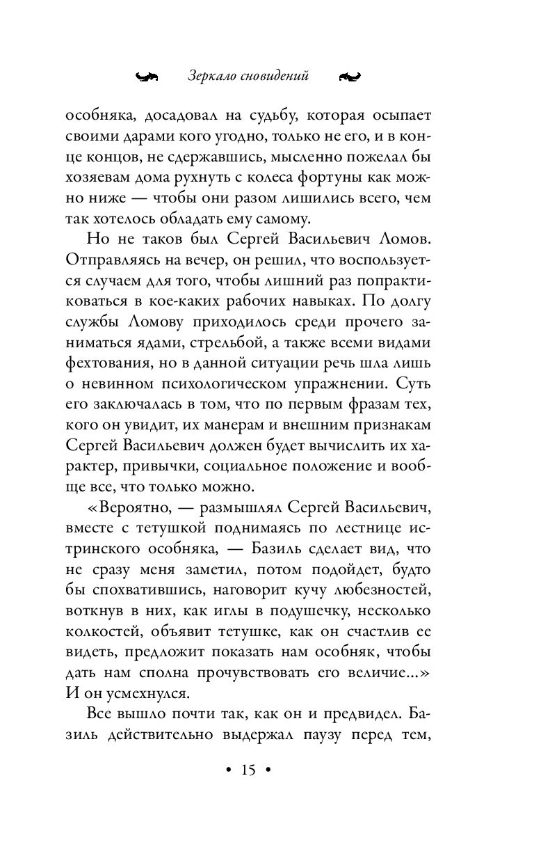 Тайный агент российского императора баронесса Амалия Корф вместе с напарником, Сергеем Ломовым, ожидала приказа отправиться на новое дело государственной важности. Партнеры проводили время в фехтовальных тренировках и ментальных спаррингах. После похода в гости к своему старому знакомому, Базилю Истрину, Ломов, скептически посмеиваясь, рассказал Амалии о том, что накануне двум молодым людям, Арсению Истрину и Ольге Левашевой, приснился один и тот же сон. Амалия высмеяла эту историю, однако вскоре сон в точности воплотился в реальности – был обнаружен труп Лизы, сестры Ольги. Теперь уже Амалия, циник и реалист, всерьез заинтересовалась этим делом и самостоятельно взялась за расследование...