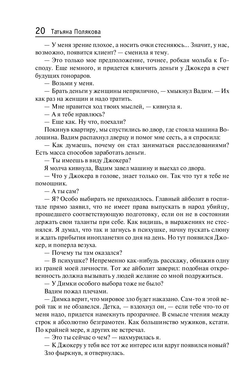 Мы снова вместе, нас четверо – Джокер, Поэт, Девушка... и тот, кого совсем недавно мы считали своим врагом. У нас новое детективное расследование. Пропала Нелли, жена преуспевающего бизнесмена Зорина. Оказывается, более десяти лет назад он потерял и первую супругу – Аделаиду...