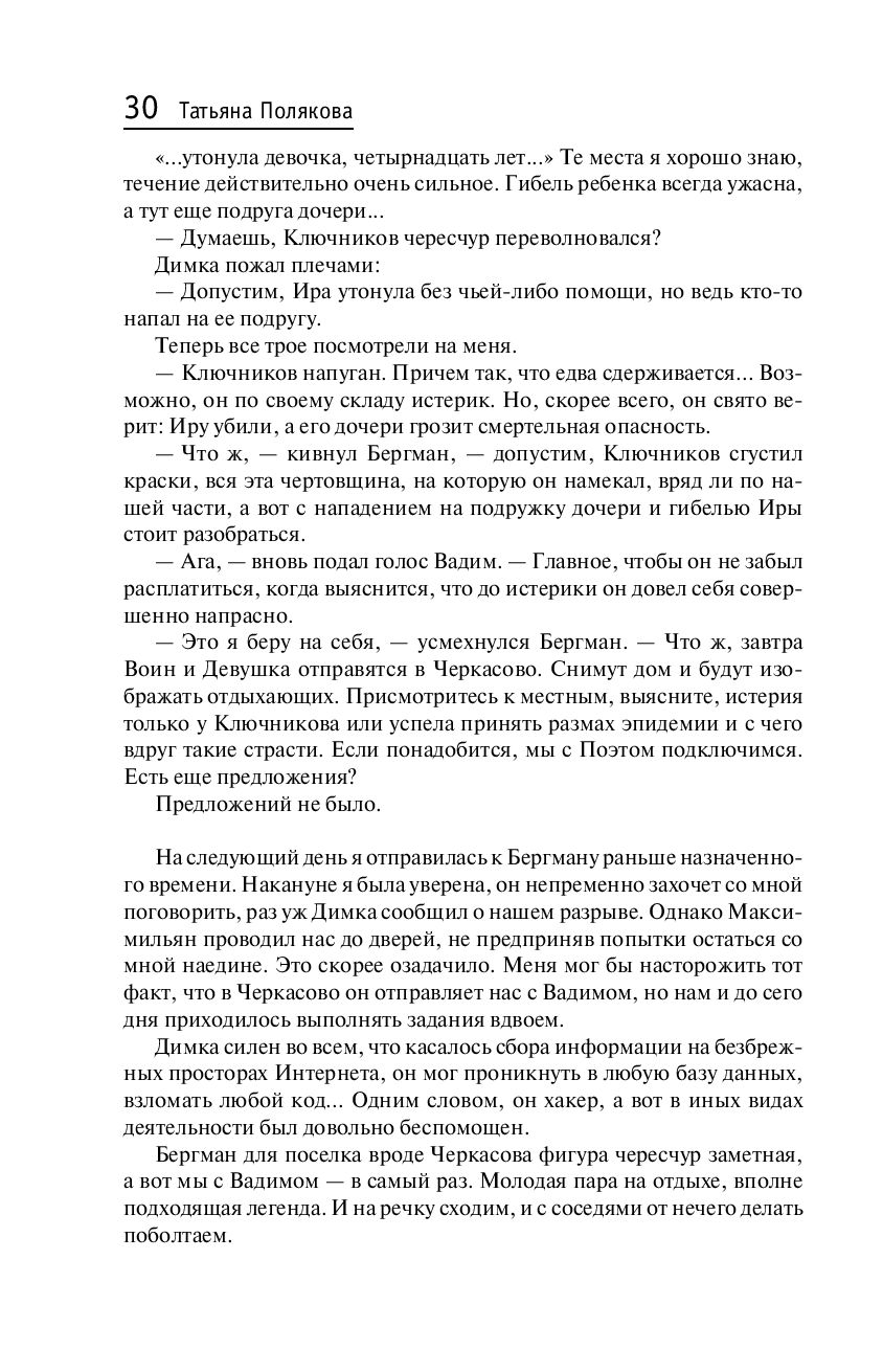 Трое мужчин со странными прозвищами – Джокер, Воин и Поэт – появились в моей жизни недавно, мгновенно перевернув все с ног на голову. Наша сплоченная команда занимается расследованием преступлений. Вот и сейчас к нам обратился новый клиент, богатый бизнесмен Павел Ключников, проживающий в поселке Черкасово, где творятся зловещие дела...