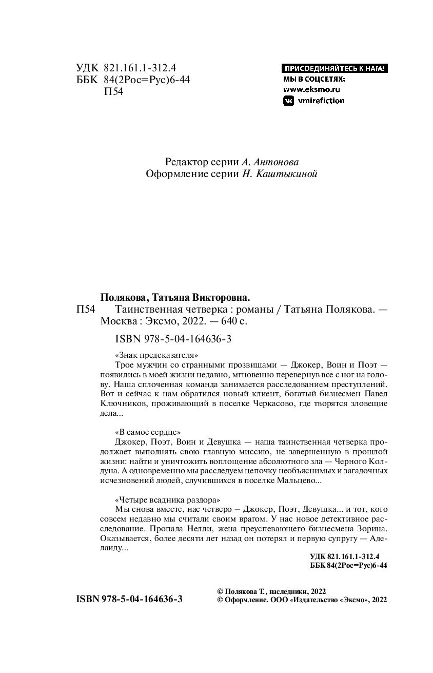 Джокер, Поэт, Воин и Девушка – наша таинственная четверка продолжает выполнять свою главную миссию, не завершенную в прошлой жизни: найти и уничтожить воплощение абсолютного зла – Черного Колдуна. А одновременно мы расследуем цепочку необъяснимых и загадочных исчезновений людей, случившихся в поселке Мальцево...
