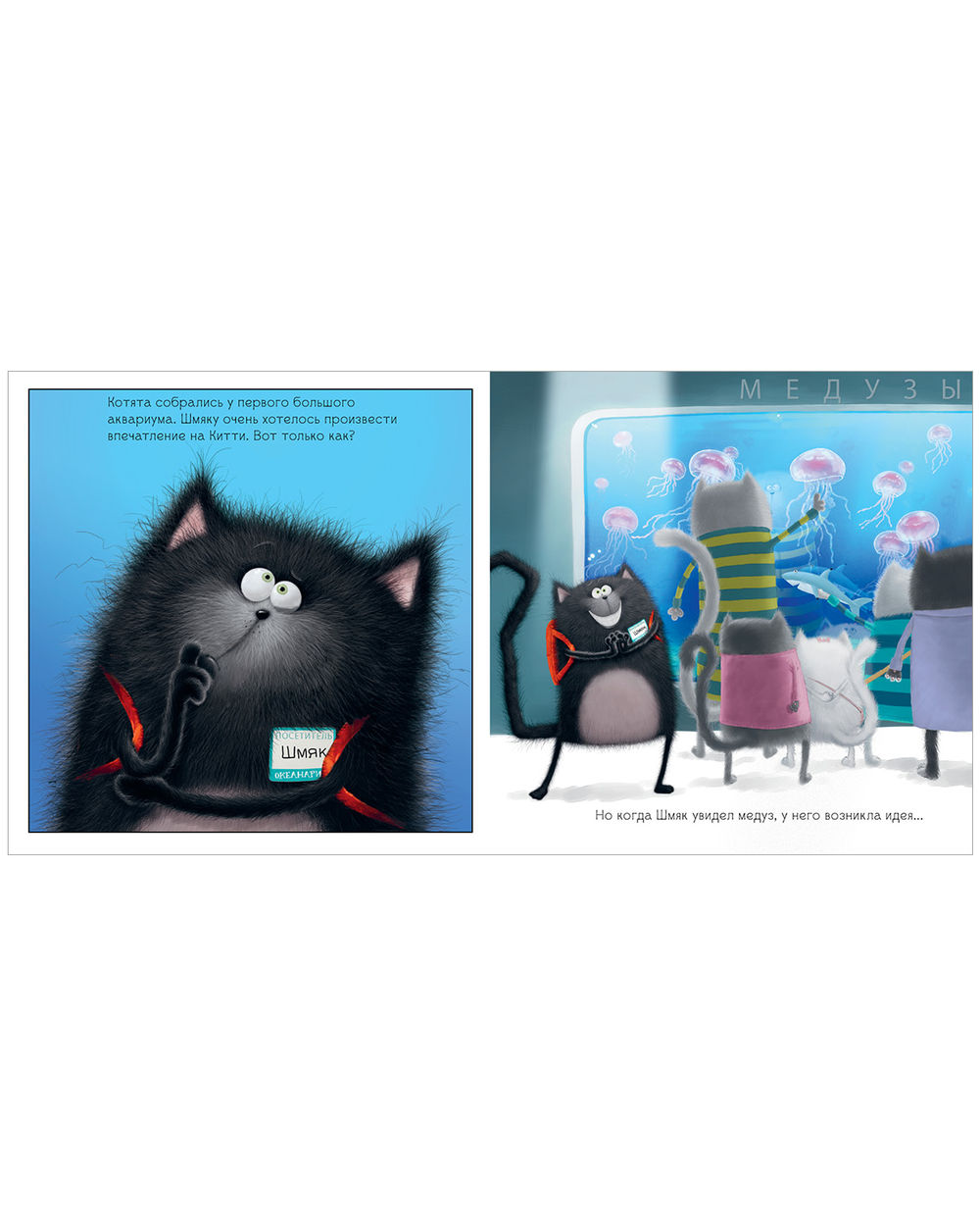В новой книжке "Шмяк и рыбки" класс котенка отправился на экскурсию в океанариум. Увы, Шмяк не успел занять в школьном автобусе место возле Китти. Как же теперь привлечь её внимание? Может, блеснуть своими знаниями о подводных обитателях? Но что делать, если медузы сделаны вовсе не из мармелада, а рыбы-коровы совсем не дают молока?! Удастся ли Шмяку завоевать внимание и увидеть улыбку на мордочке, любимой Китти? Скорее приступаем к чтению!