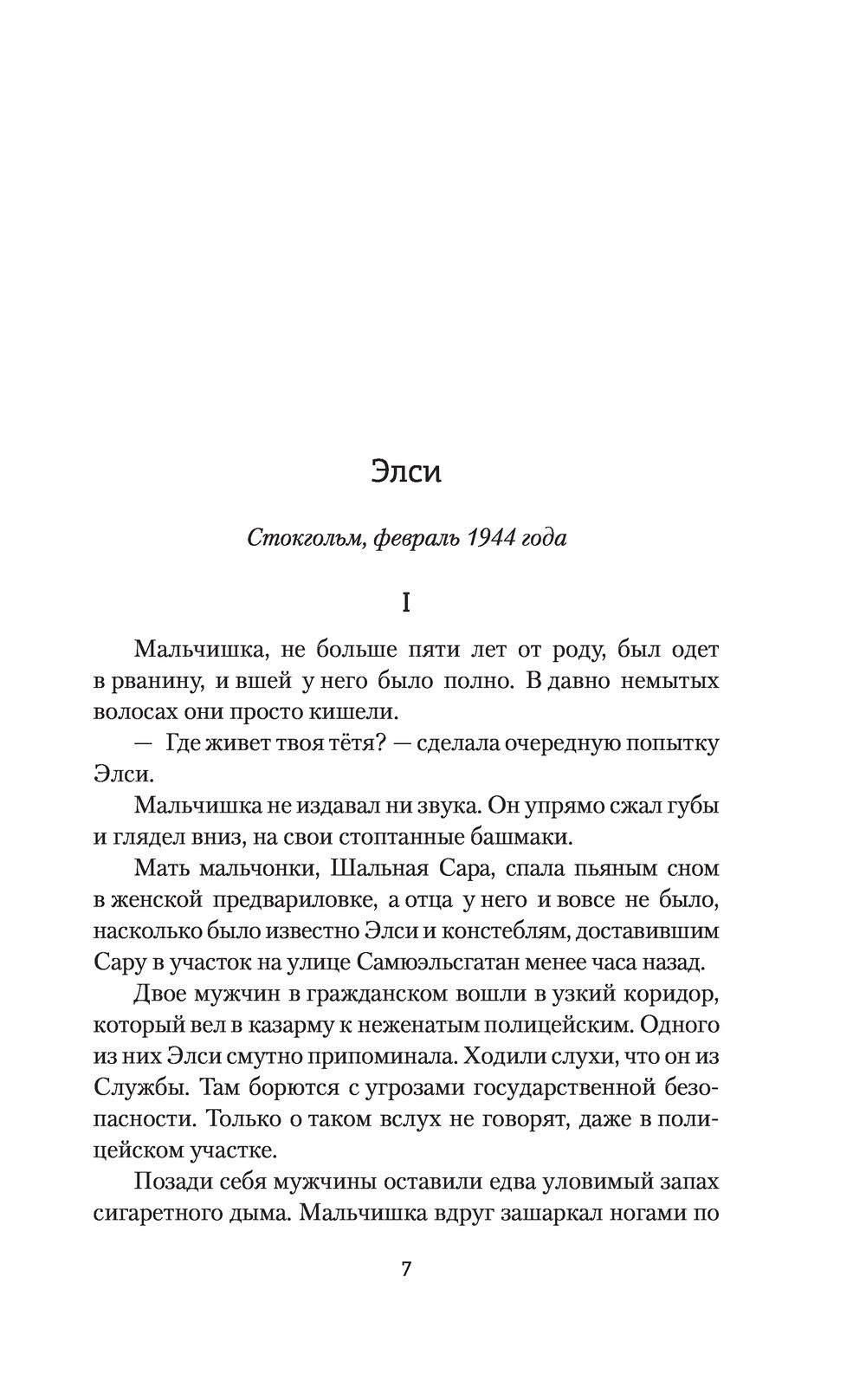 1944 год. Стокгольм. В районе, пользующемся дурной славой, совершено жестокое убийство. Одной из первых на место преступления прибывает Элси Свеннс, молодая девушка, недавно поступившая на полицейскую службу. Убийца не торопится бежать от стражей порядка, и когда Элси оказывается у него на пути, ее участь уже предрешена…
