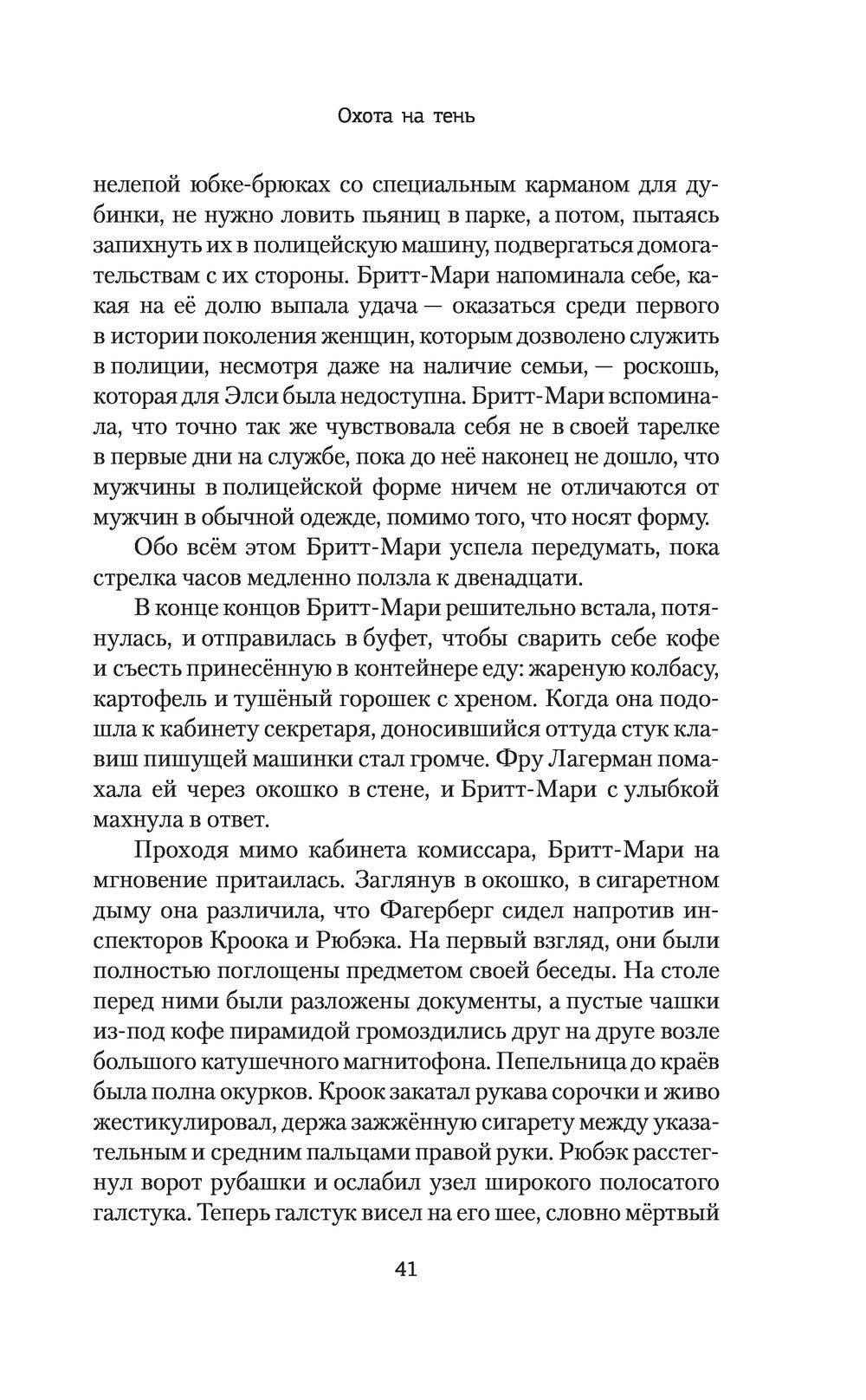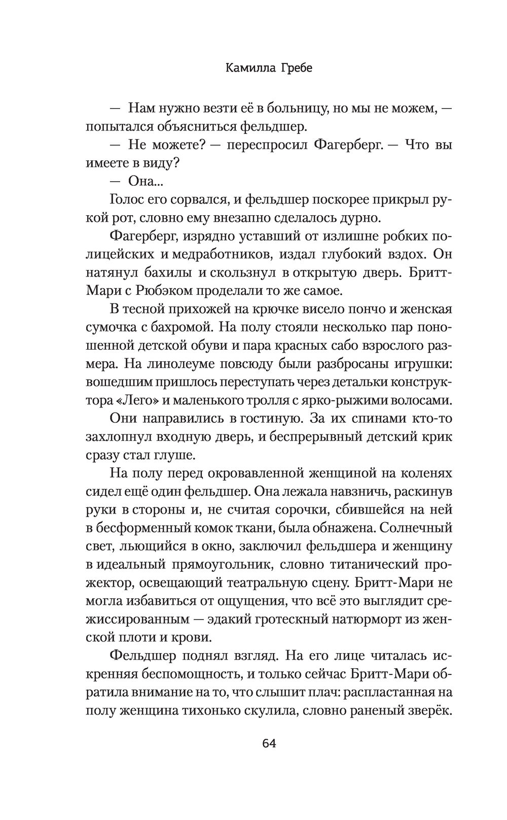 Коллеги не воспринимают Бритт-Мари всерьез, но она обладает силой, с которой стоит считаться, и кажется, что она вот-вот приблизится к разгадке. Но ее упорства оказывается недостаточно, чтобы вступить в схватку с безжалостным убийцей. Преступник ускользает, а вместе с ним пропадает и Бритт-Мари.