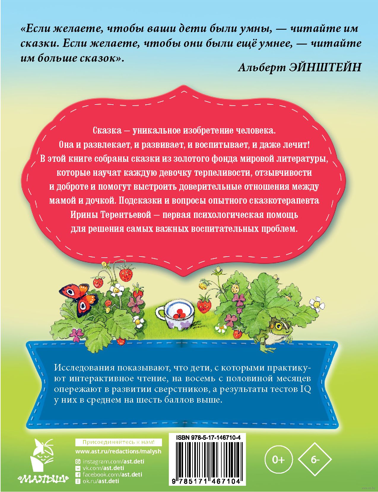 Сказка – уникальное изобретение человека. Она и развлекает, и развивает, и воспитывает, и даже лечит! В этой книге собраны сказки из золотого фонда отечественной литературы: К. Паустовский "Стальное колечко", В. Осеева "Волшебная иголочка", В. Катаев "Дудочка и кувшинчик". Они научат девочек терпеливости, отзывчивости и доброте и помогут выстроить доверительные отношения между мамой и дочкой. Подсказки и вопросы опытного сказкотерапевта Ирины Терентьевой – первая психологическая помощь для решения самых важных воспитательных проблем.