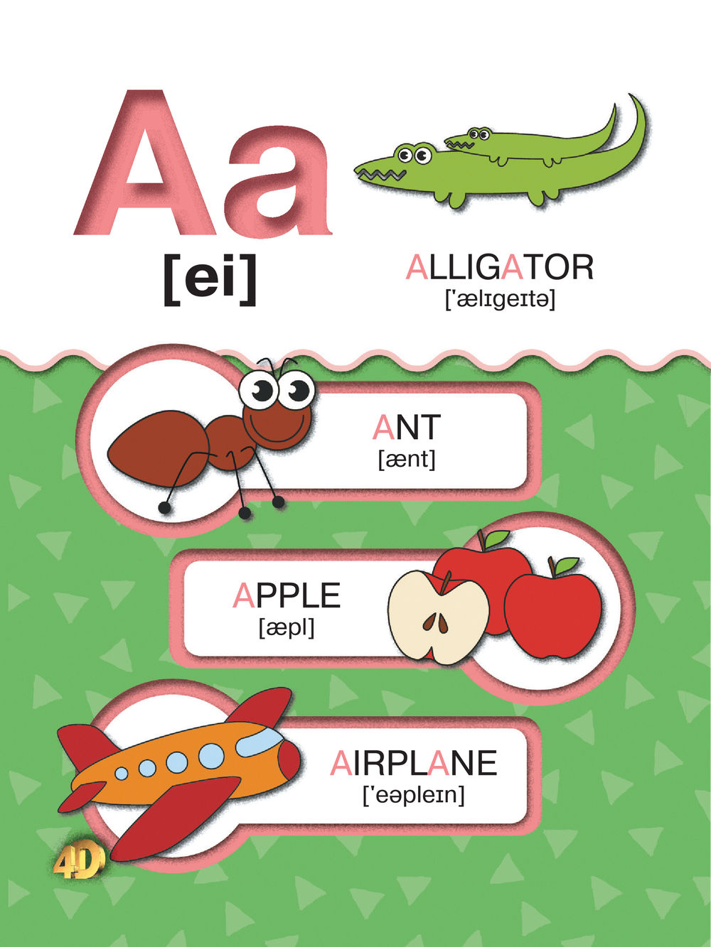 Этот уникальный набор из интерактивных обучающих карточек познакомит ребёнка с буквами и словами английского языка. В ходе увлекательной игры с помощью дополненной реальности малыш с удовольствием начнёт осваивать азы английского языка, сможет запомнить графический образ буквы английского алфавита и услышать, как она правильно произносится. Активируя на экране мобильного устройства кнопки с картинками, ребёнок прослушает и выучит слова английского языка, которые начинаются на эту букву, а также познакомится со счётом до десяти, названиями цветов и форм, времён года и дней недели на английском языке.