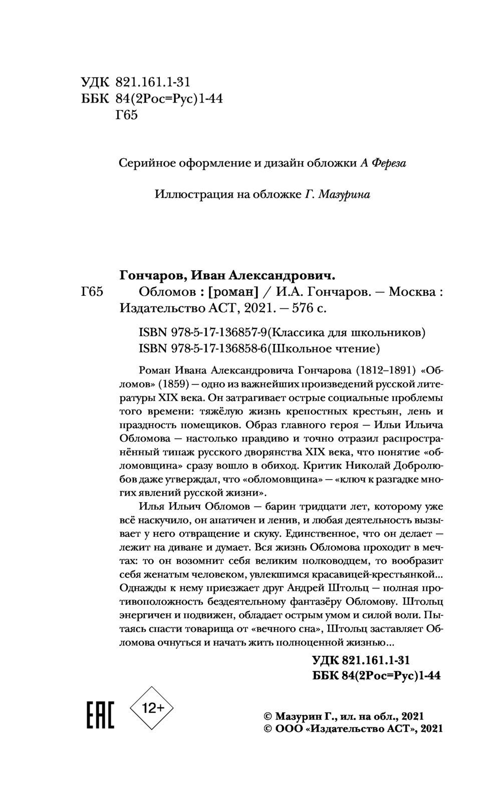 Роман Ивана Александровича Гончарова (1812-1891) "Обломов" (1859) – одно из важнейших произведений русской литературы XIX века. Он затрагивает острые социальные проблемы того времени: тяжёлую жизнь крепостных крестьян, лень и праздность помещиков. Образ главного героя – Ильи Ильича Обломова – настолько правдиво и точно отразил распространённый типаж русского дворянства XIX века, что понятие "обломовщина" сразу вошло в обиход. Критик Николай Добролюбов даже утверждал, что "обломовщина" – "ключ к разгадке многих явлений русской жизни".