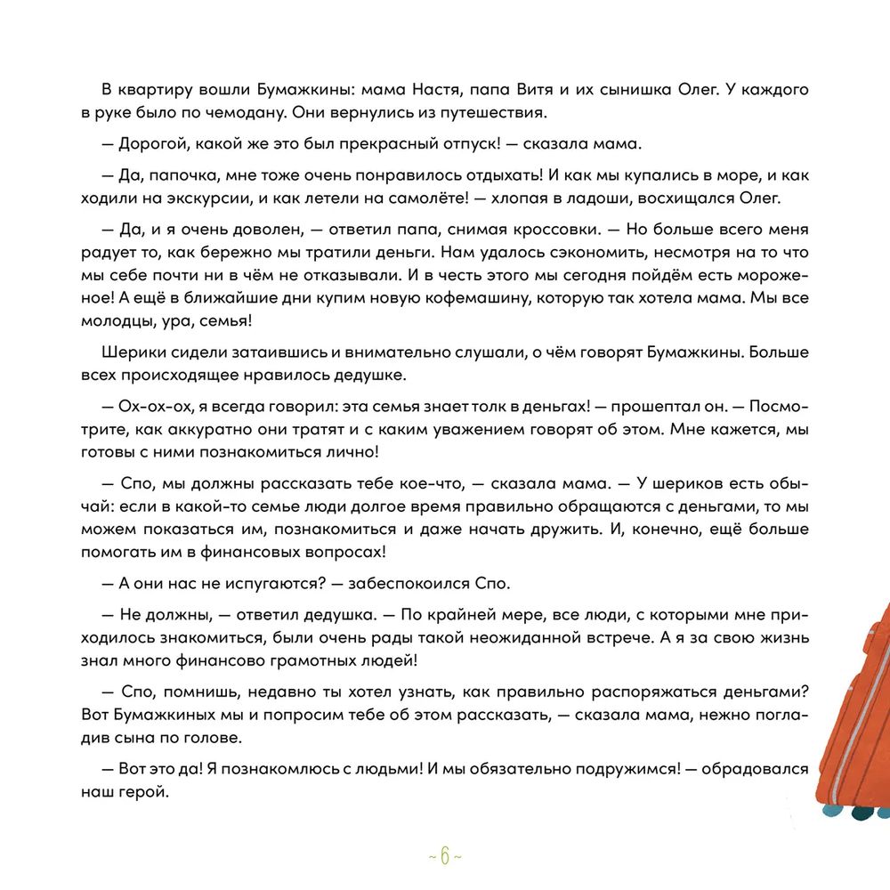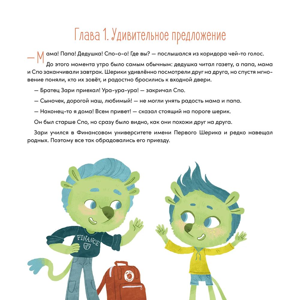 В этой книге про приключения шериков главные герои наконец познакомятся с людьми. И, конечно, именно от них Спо получит много полезной информации о том, как правильно распоряжаться деньгами. Что такое грамотное обращение с деньгами? Как правильно копить деньги? Как быть с очень дорогими покупками, на которые копить долго? Зачем нужны акции, кредиты и банковские вклады? И самое интригующее – почему подушка лучше матраса?
