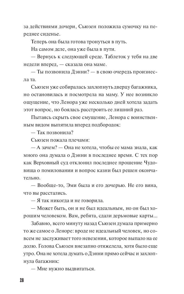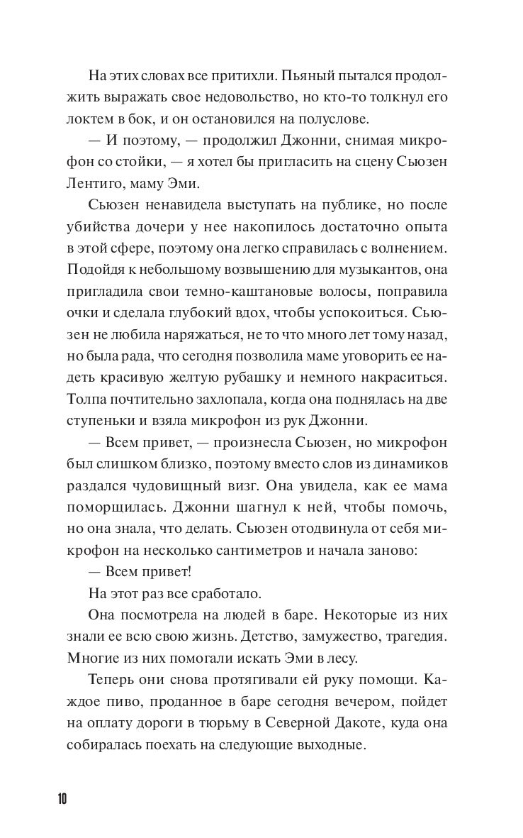 Сьюзан Лентиго – официантка в небольшом городке, жизнь которой замерла на 20 лет. Все эти годы идут поиски, а потом долгий суд над убийцей ее дочери. Мы встречаем Сьюзан в баре, в котором она проработала всю жизнь, в окружении горожан, которые ее всю жизнь знают, вечером перед отъездом на другой конец страны, где она будет присутствовать на долгожданной казни убийцы. Весь город ждет, что наконец ее кошмар закончится. Но по дороге на казнь Сьюзен заезжает к бывшему мужу и отцу ее дочери, чтобы сообщить о вердикте, и случайно обнаруживает у него ожерелье Эми, которое 20 лет искала полиция. Начинается история борьбы маленькой женщины с большим миром полицейско-судебной системы и с ее собственными убеждениями, не позволявшими ей предположить, что убийцей мог быть столь близкий человек.