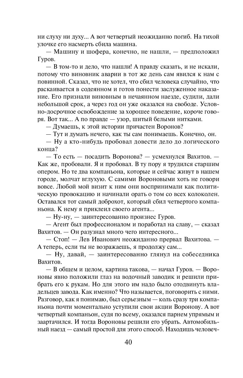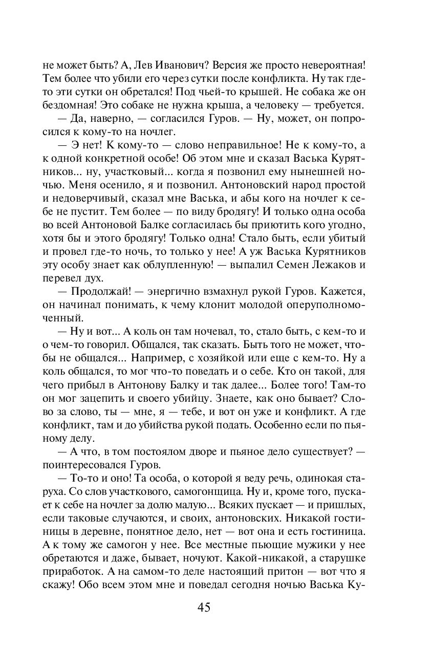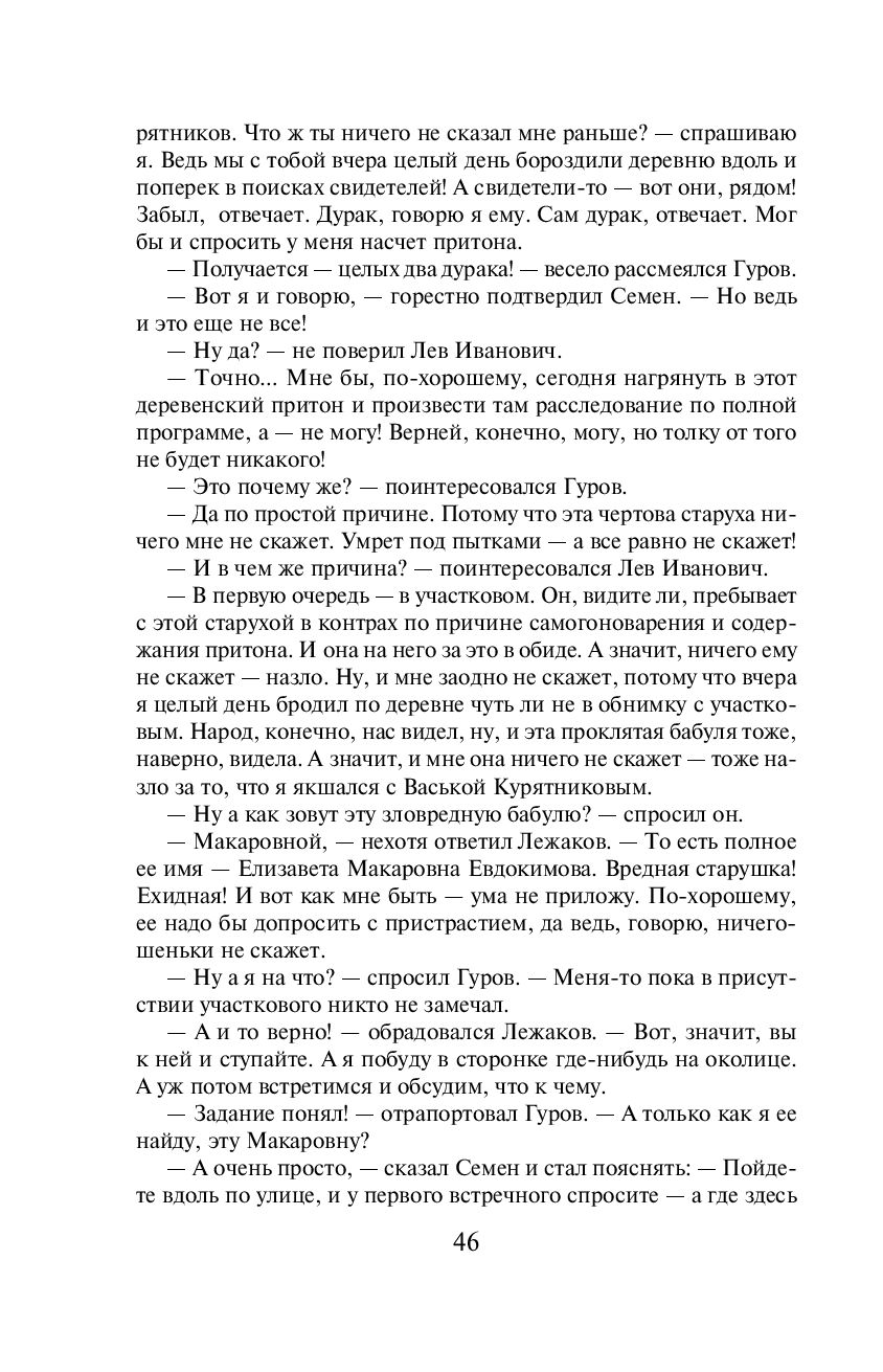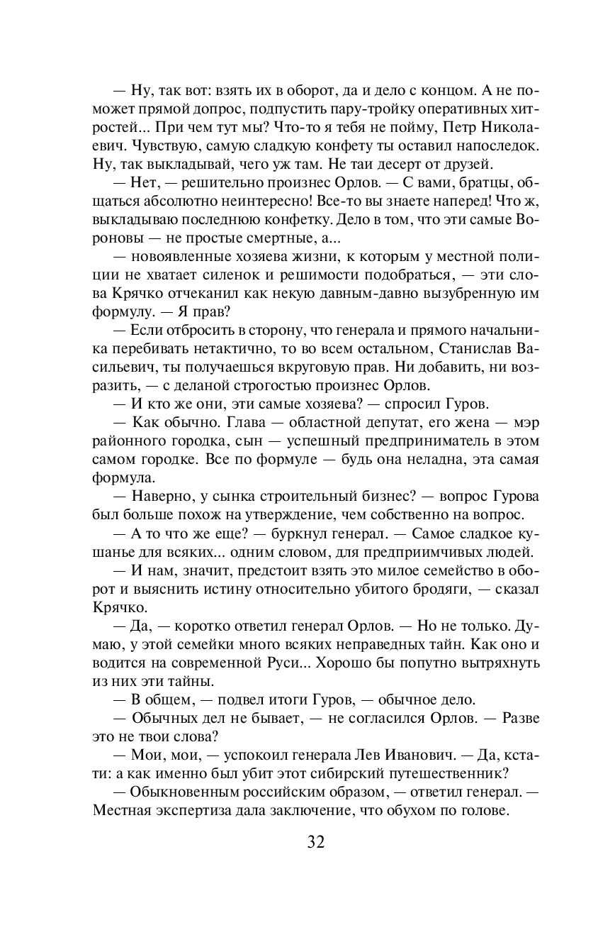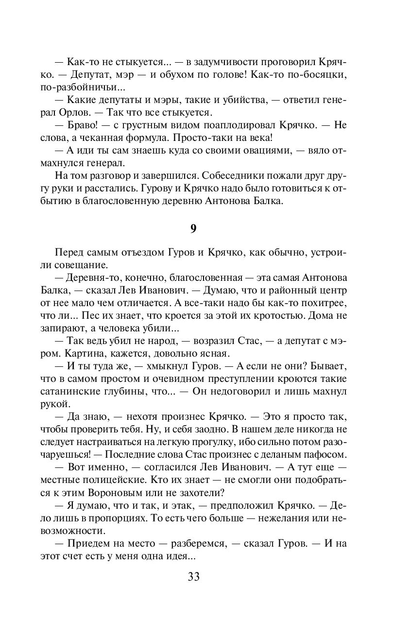 В глухой деревне убит заезжий бродяга. Кто и за что лишил его жизни, полиции выяснить не удалось. Дело можно было принять за обычную бытовуху, если бы не подозрение, что в нем замешано респектабельное семейство местного депутата. Выяснить это поручено полковникам МВД Гурову и Крячко. Чтобы вычислить злоумышленника, оперативники разрабатывают хитроумный план: Гуров представляется местному населению сыщиком, а Крячко – столичным бизнесменом, собирающимся купить в этих краях дом. Уловка сработала как раз в тот момент, когда в деревне произошло новое страшное преступление...