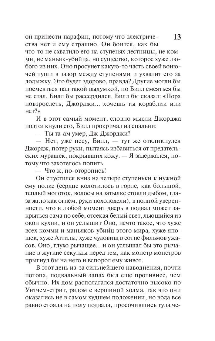 В маленьком провинциальном городке Дерри много лет назад семерым подросткам пришлось столкнуться с кромешным ужасом – живым воплощением ада. Прошли годы... Подростки повзрослели, и ничто, казалось, не предвещало новой беды. Но кошмар прошлого вернулся, неведомая сила повлекла семерых друзей назад, в новую битву со Злом. Ибо в Дерри опять льется кровь и бесследно исчезают люди. Ибо вернулось порождение ночного кошмара, настолько невероятное, что даже не имеет имени...