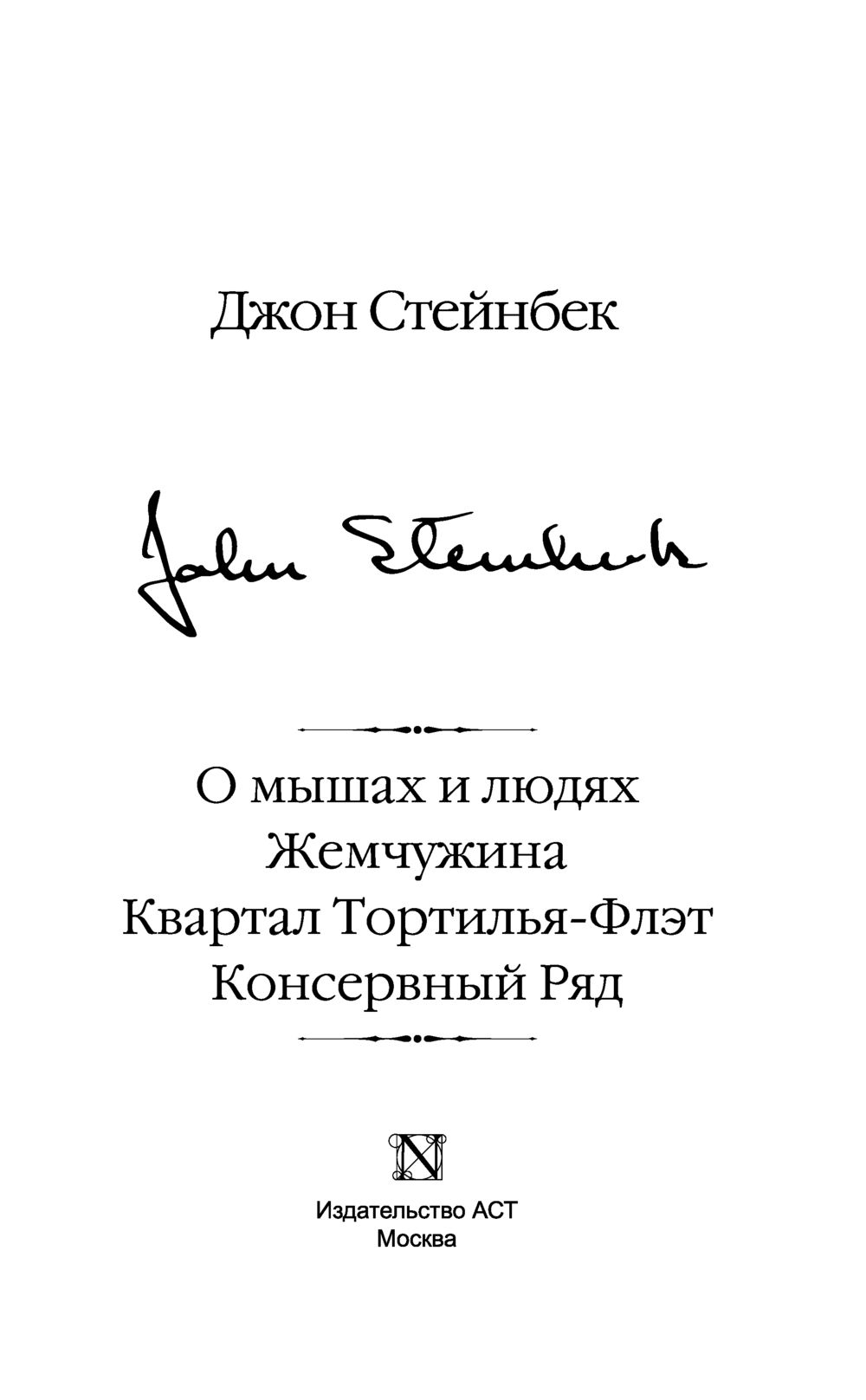 | Название в оригинале | Mice and men. The pearl. Tortilla Flat |