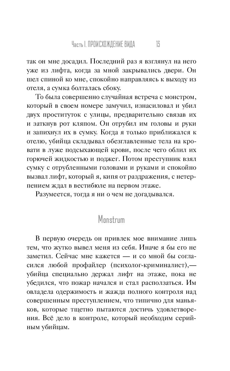 До того как этот термин начал широко использоваться (с 1981 года), не было "серийных убийц". Были только "монстры" – убийцы, которых общество сначала воспринимало как оборотней, вампиров, упырей и ведьм, а позже – как хичкоковских психов.