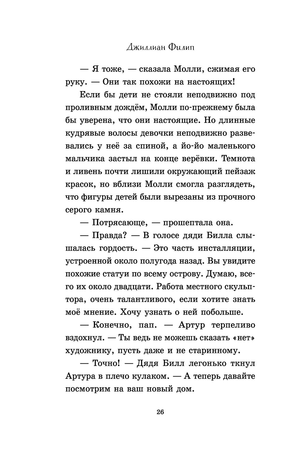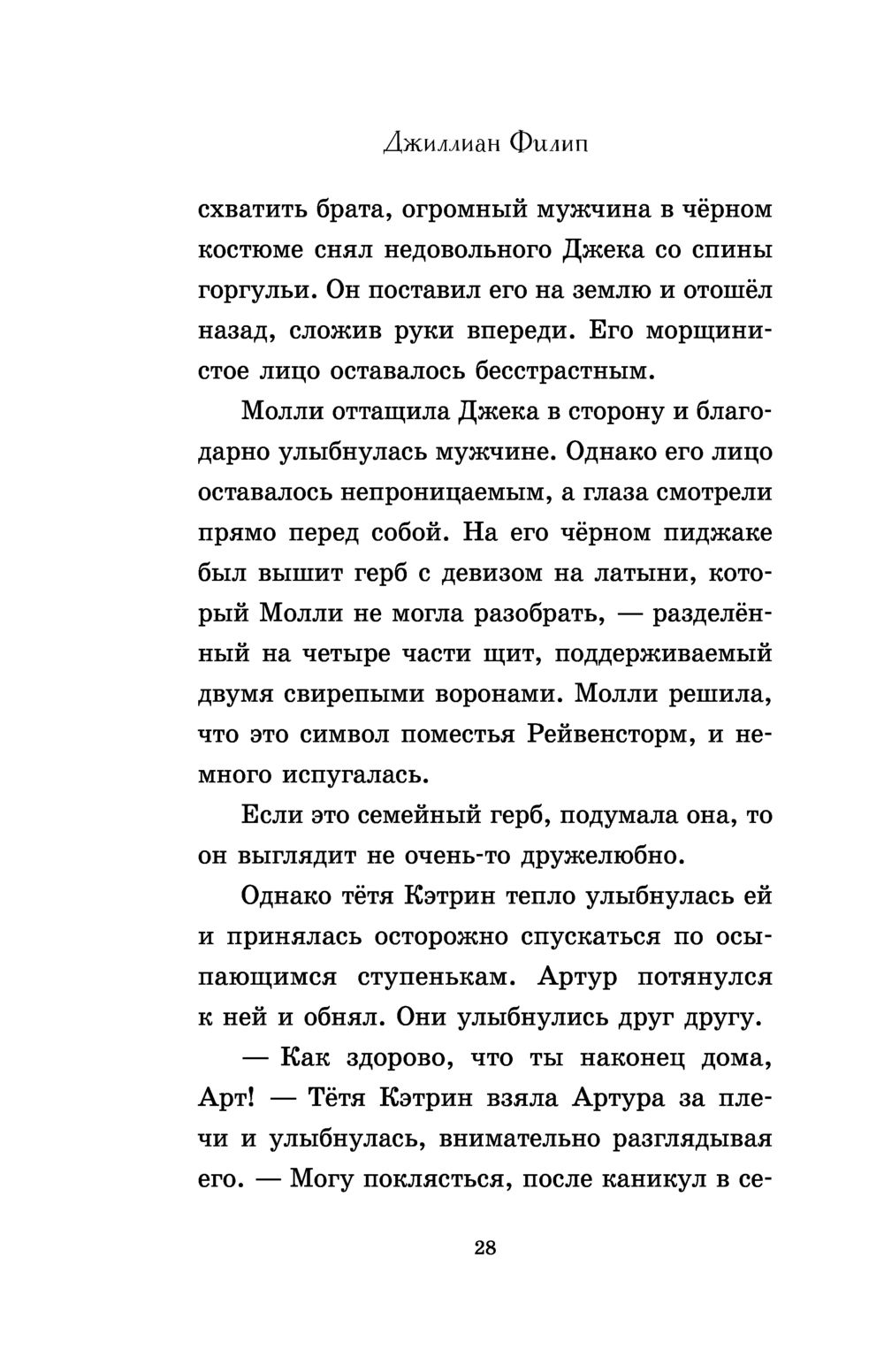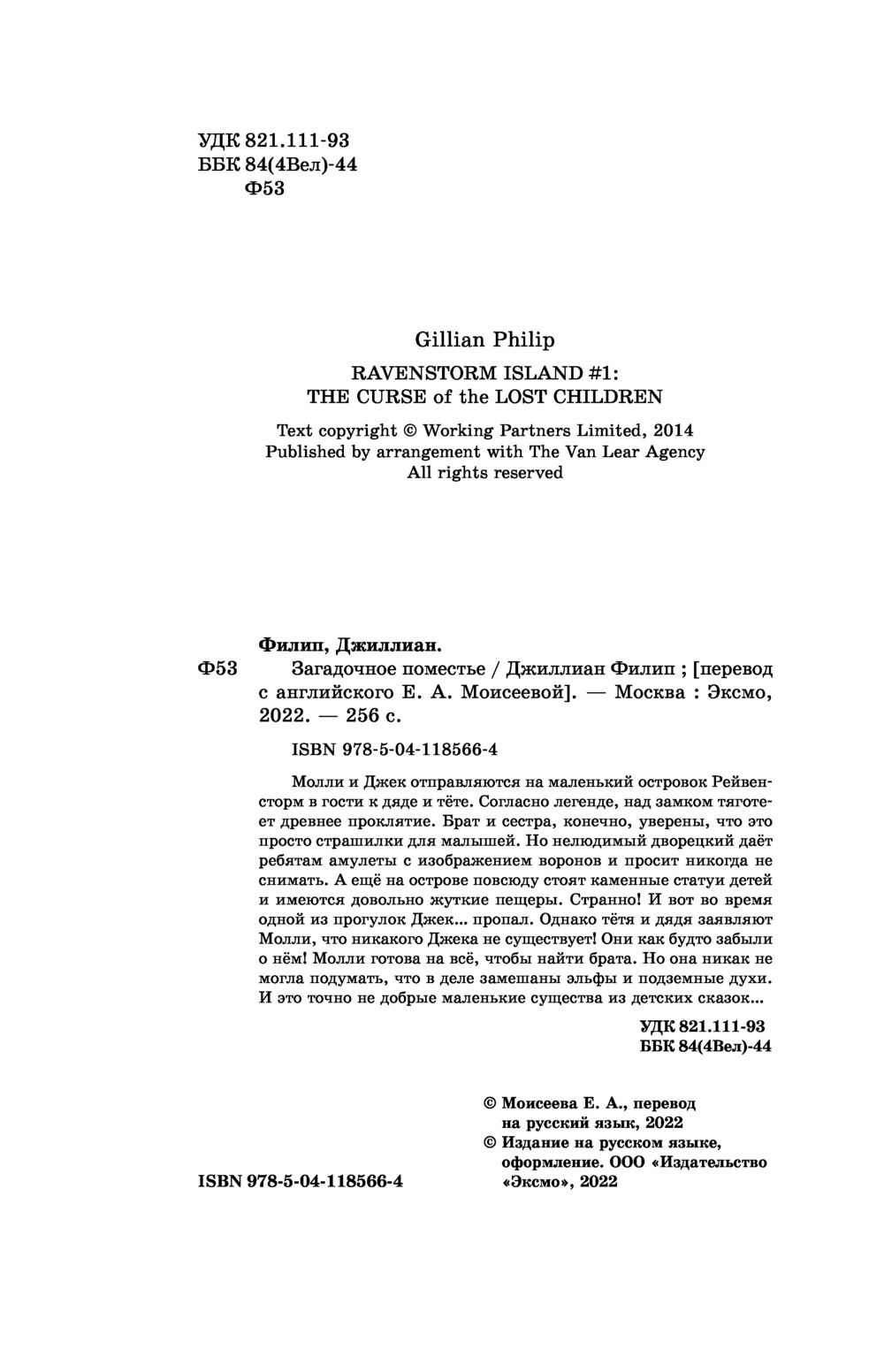 Молли и Джек отправляются на маленький островок Рейвенсторм в гости к дяде и тёте. Согласно легенде, над замком тяготеет древнее проклятие. Брат и сестра, конечно, уверены, что это просто страшилки для малышей. Но нелюдимый дворецкий даёт ребятам амулеты с изображением воронов и просит никогда не снимать. А ещё на острове повсюду стоят каменные статуи детей и имеются довольно жуткие пещеры. Странно! И вот во время одной из прогулок Джек... пропал. Однако тётя и дядя заявляют Молли, что никакого Джека не существует! Они как будто забыли о нём! Молли готова на всё, чтобы найти брата. Но она никак не могла подумать, что в деле замешаны эльфы и подземные духи. И это точно не добрые маленькие существа из детских сказок...