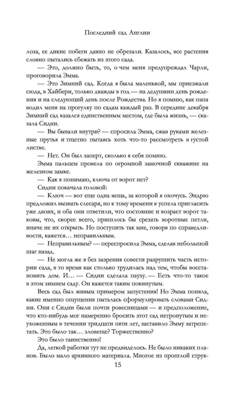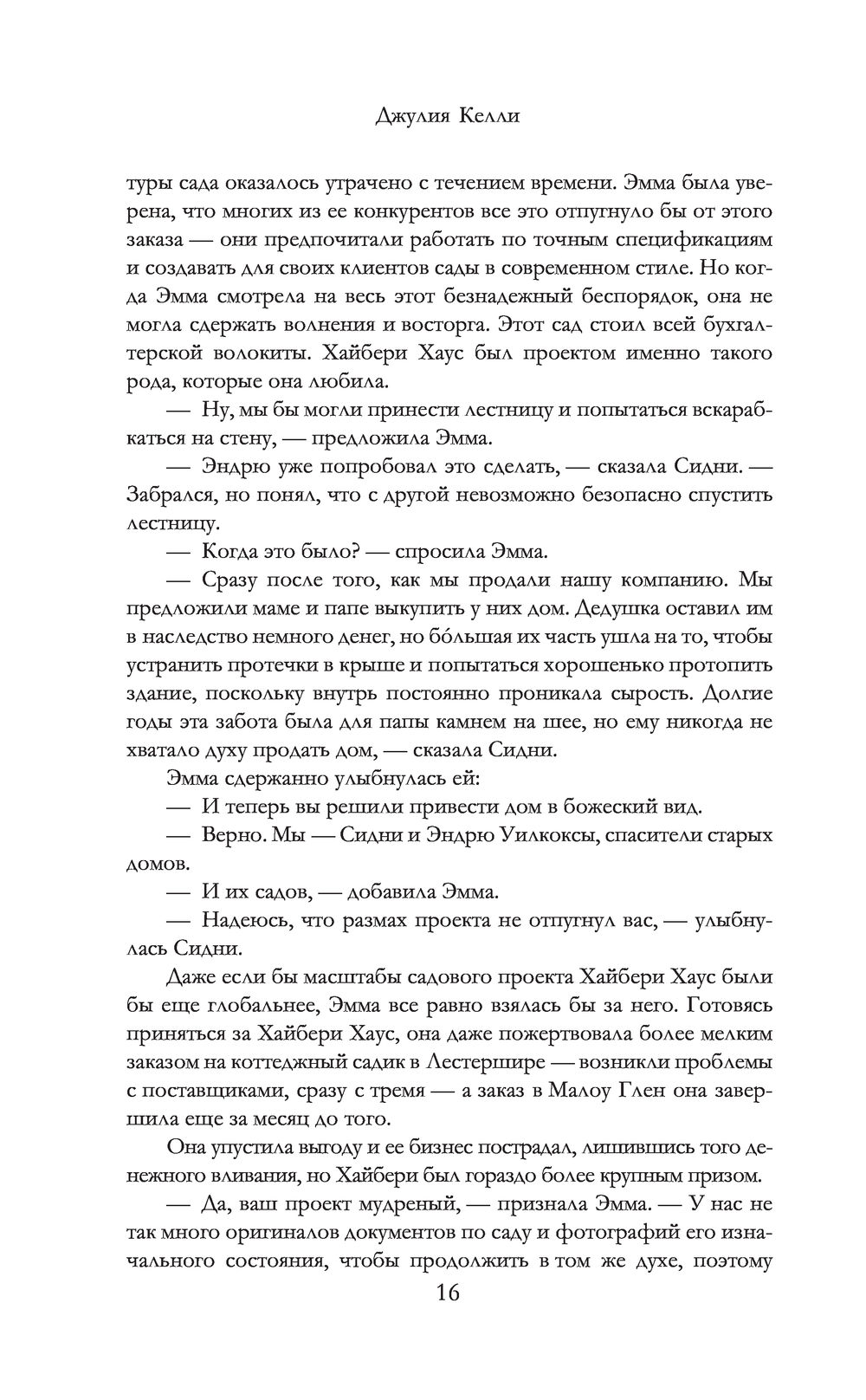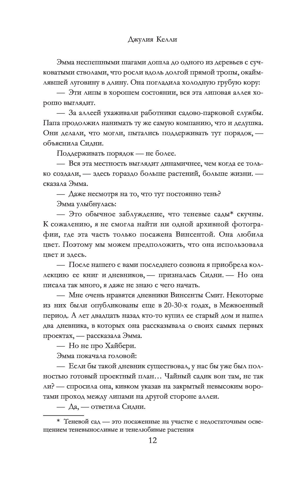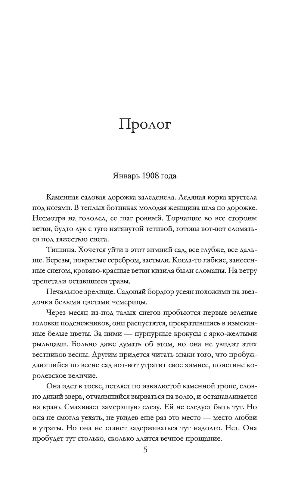 Эмма Лоуэлл всю свою жизнь посвятила работе: она реставрирует заброшенные сады. Когда ей представляется уникальная возможность восстановить сад в знаменитом поместье Хайбери Хаус, девушка с радостью берется за дело. Старый сад, спроектированный в 1907 году Винсентой Смит, скрывает в себе тайны дома и людей, которые жили здесь. Истории, навсегда оставшиеся в памяти поместья. Здесь причудливо сплетаются года и века, от начала двадцатого века, когда Винсента нашла себе занятие в качестве садового дизайнера для промышленников и банкиров, до военных лет. Секреты, хранимые десятилетиями, готовы открыться каждому, кто будет внимательно смотреть и слушать.
