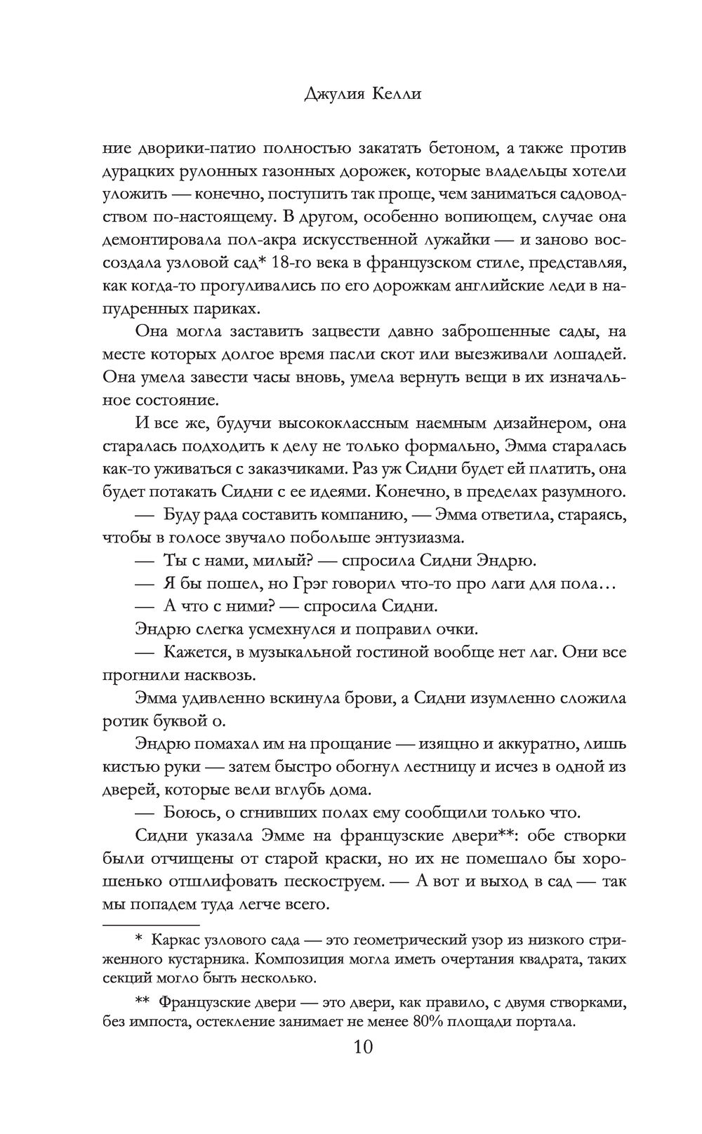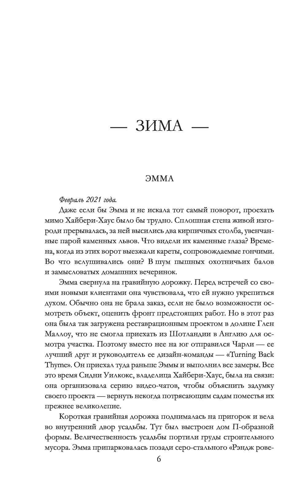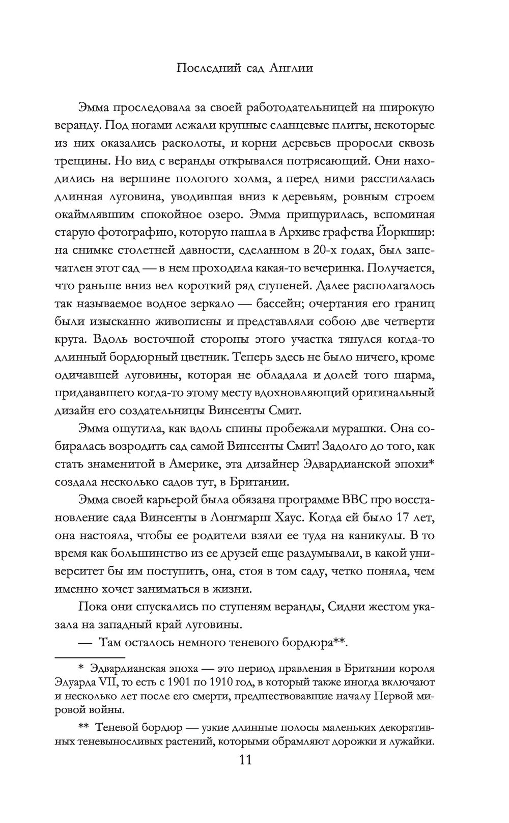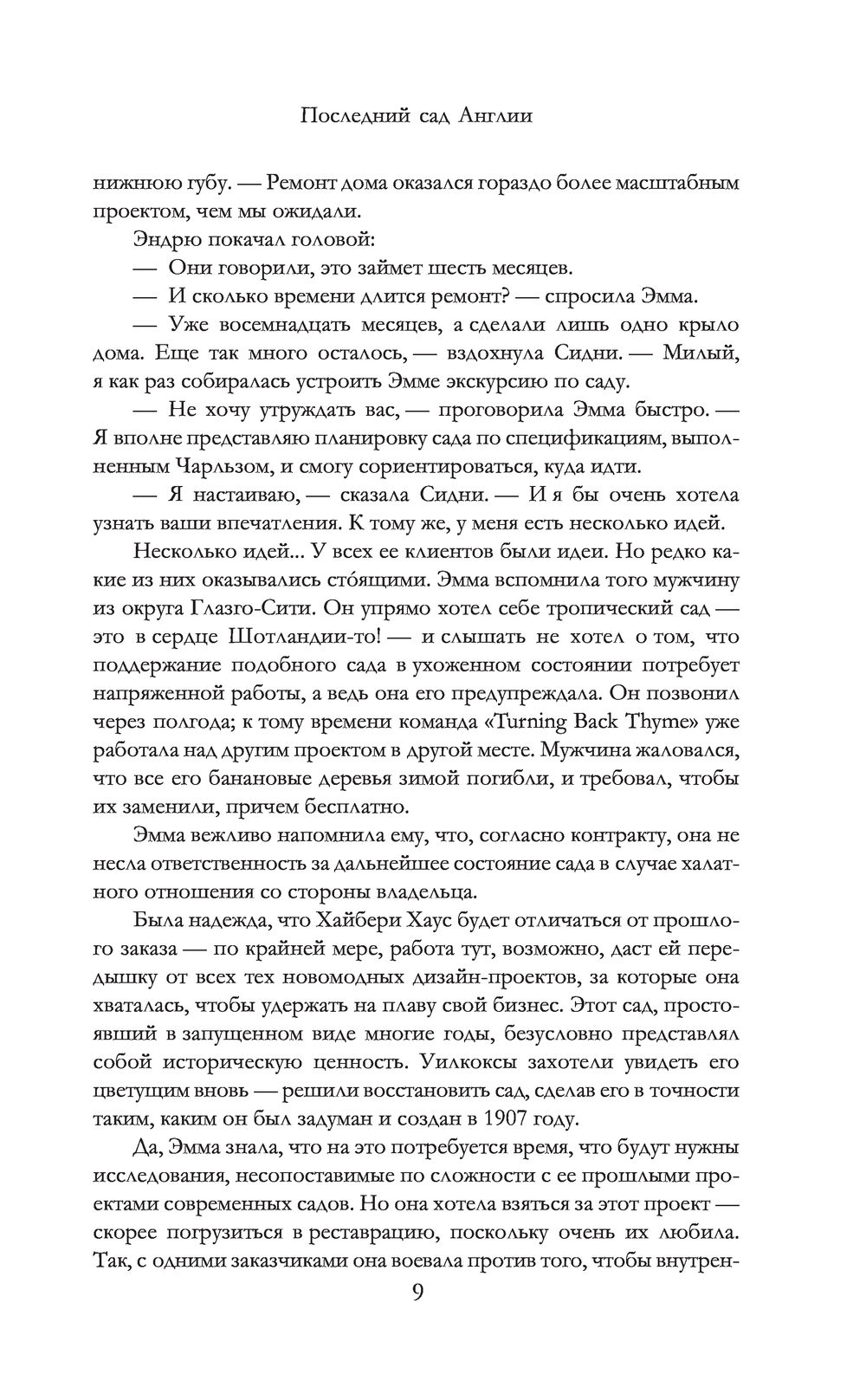 Эмма Лоуэлл всю свою жизнь посвятила работе: она реставрирует заброшенные сады. Когда ей представляется уникальная возможность восстановить сад в знаменитом поместье Хайбери Хаус, девушка с радостью берется за дело. Старый сад, спроектированный в 1907 году Винсентой Смит, скрывает в себе тайны дома и людей, которые жили здесь. Истории, навсегда оставшиеся в памяти поместья. Здесь причудливо сплетаются года и века, от начала двадцатого века, когда Винсента нашла себе занятие в качестве садового дизайнера для промышленников и банкиров, до военных лет. Секреты, хранимые десятилетиями, готовы открыться каждому, кто будет внимательно смотреть и слушать.