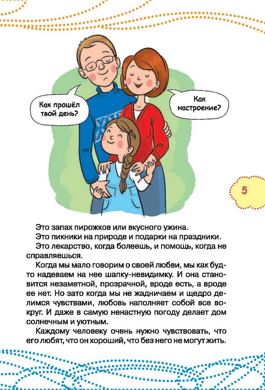 В своей новой книге известный психолог Ирина Чеснова предлагает юным читателям поговорить о семье: о том, как общаться с близкими, чтобы всем было тепло и радостно, чтобы каждый чувствовал себя любимым и принятым. Чтобы ссор и обид было меньше, а счастливых, запоминающихся моментов – больше.
