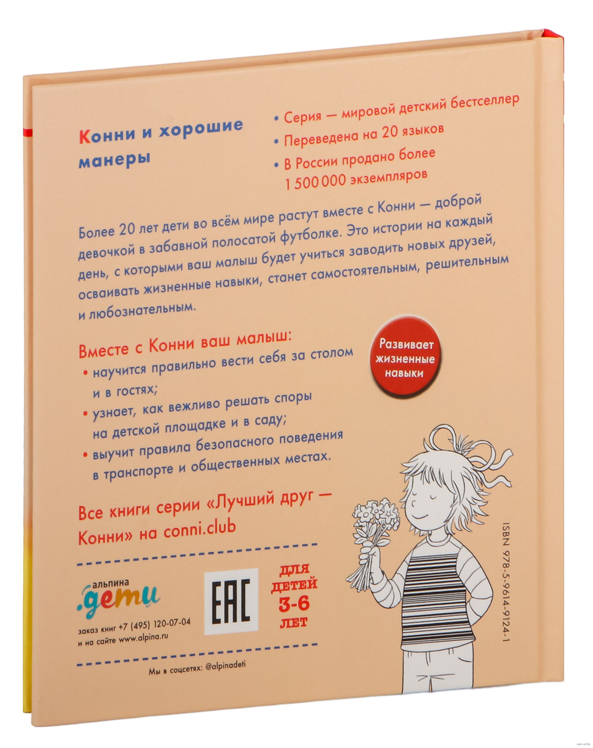 Эта история про Конни покажет, как важно быть приветливым, не ругаться, не спорить, не драться и не устраивать истерики. Прочитав только эту одну книгу, вы научите ребенка всем важным социальным навыкам: как вести себя с друзьями в детском саду, в гостях, за столом, быть вежливым в общественном траспорте, в магазине и не мусорть на природе.