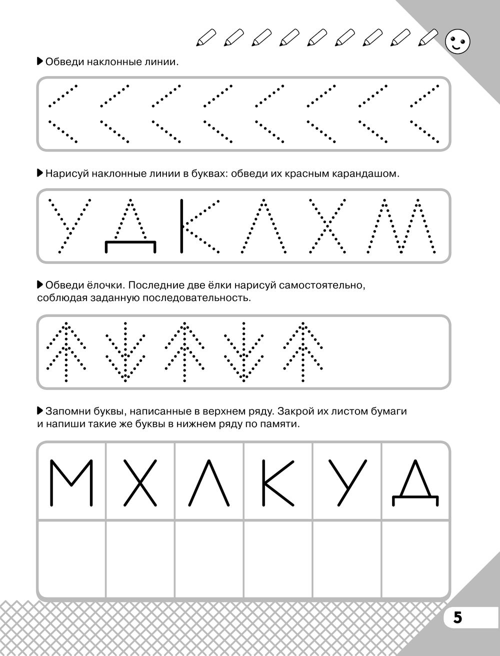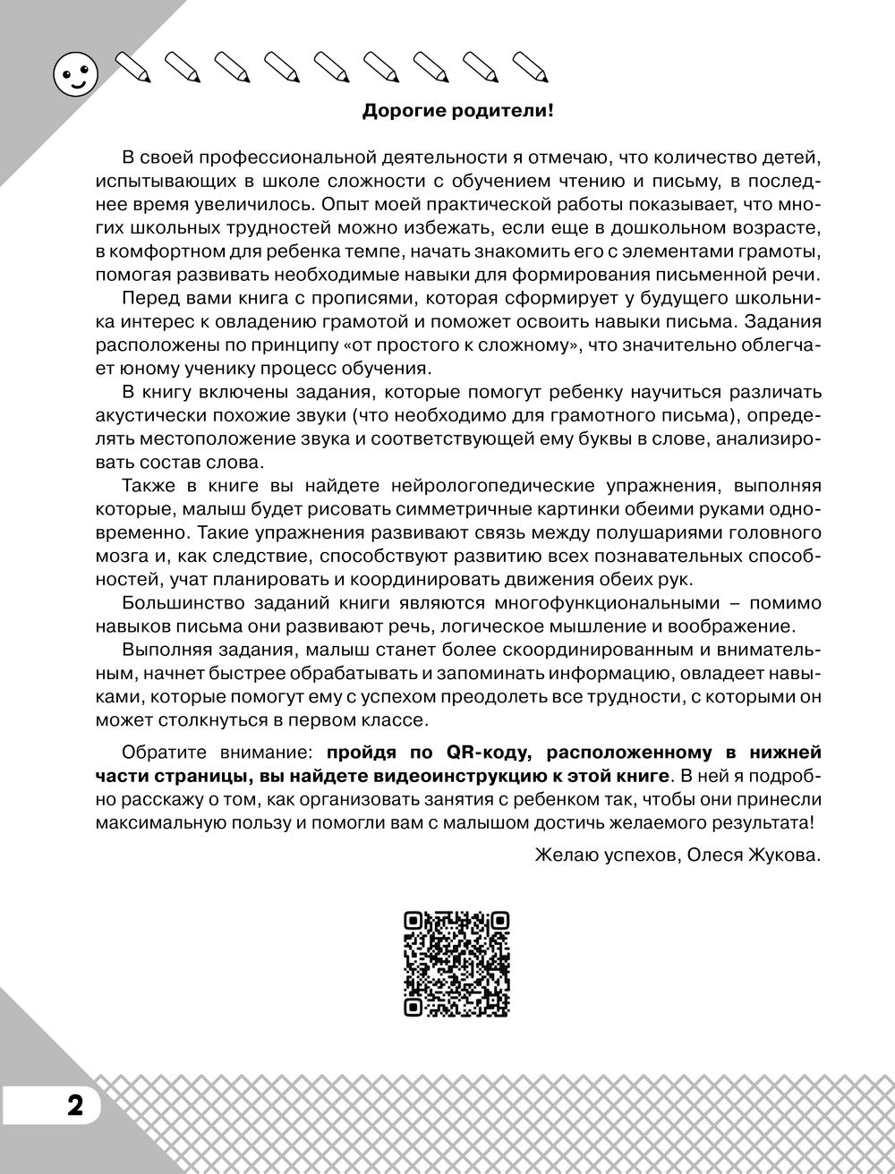 В книге вы найдете уникальные авторские задания, основанные на современных методиках подготовки ребенка к школе. Большинство упражнений многофункциональны – помимо навыков письма они развивают логическое мышление, воображение и речь. Ваш малыш станет более внимательным и сосредоточенным, начнет быстрее обрабатывать и воспринимать новую информацию.