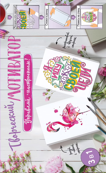 Превращай мечты в цели! Рисуй свои желания, раскрашивай мотиваторы, наполняя своей энергией. Вдохновляйся! Повесь свои заряженные позитивом работы на стену, смотри на них каждый день – настраивайся на победу!