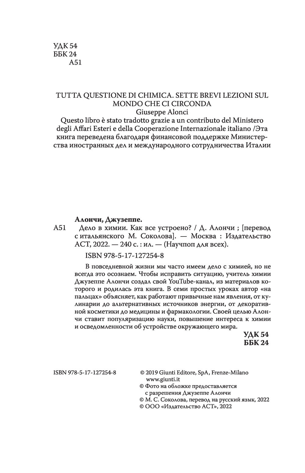 В повседневной жизни мы часто имеем дело с химией, но не всегда это осознаем. Чтобы исправить ситуацию, учитель химии Джузеппе Алончи создал свой YouTube канал, из материалов которого и родилась эта книга. В семи простых уроках автор "на пальцах" объясняет, как работают привычные нам явления, от кулинарии до альтернативных источников энергии, от декоративной косметики до медицины и фармакологии. Своей целью Алончи ставит популяризацию науки, повышение интереса к химии и осведомленности об устройстве окружающего мира.