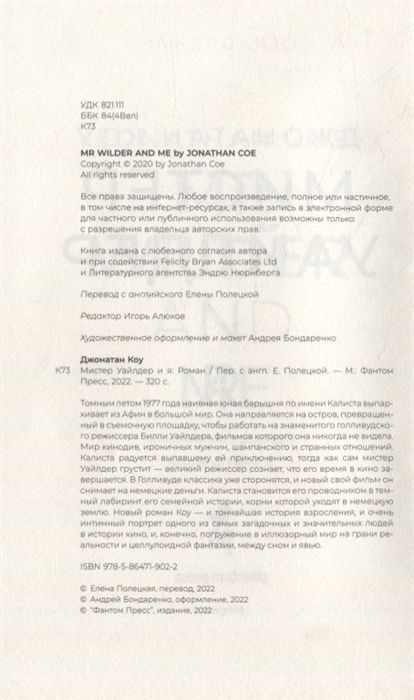 Новый роман Коу – и тончайшая история взросления, и очень интимный портрет одного из самых загадочных и значительных людей в истории кино, и, конечно, погружение в иллюзорный мир на грани реальности и целлулоидной фантазии, между сном и явью.