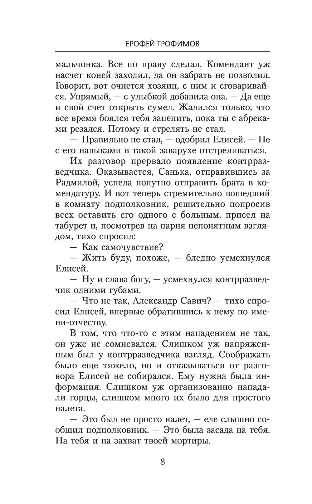 Ну, вроде обошлось. Елисей, вертясь волчком, умудрился и в крепости прижиться, и с контрразведкой подружиться, и даже казачьему кругу ко двору прийтись. Но как говорится, человек предполагает, а бог располагает. Судьба подкинула ему несколько сирот, и Елисей решил вырастить из них настоящих разведчиков, а по-местному – пластунов. Но не все так просто в этой жизни. Обучая ребят, ему придется попутно снова окунуться в интриги и схватки с теми, кто желает гибели его новой-старой родине. А значит, опять будут погони, поиски и кровавые схватки, выжить в которых совсем непросто...