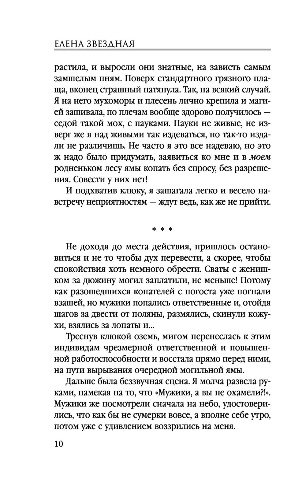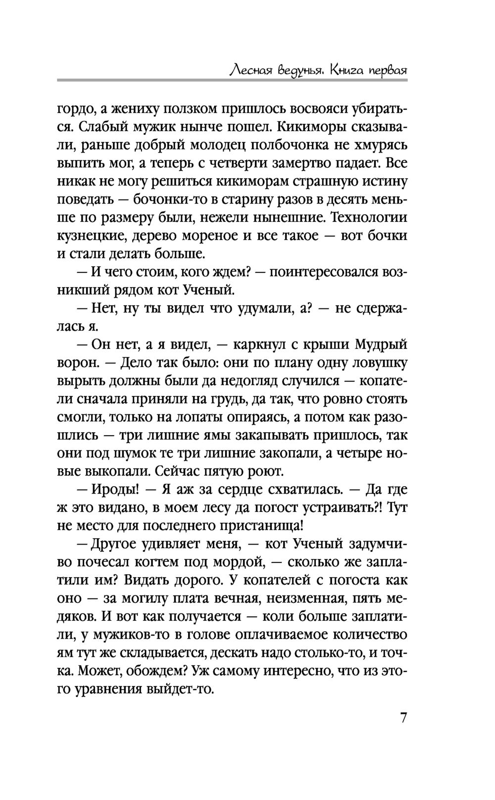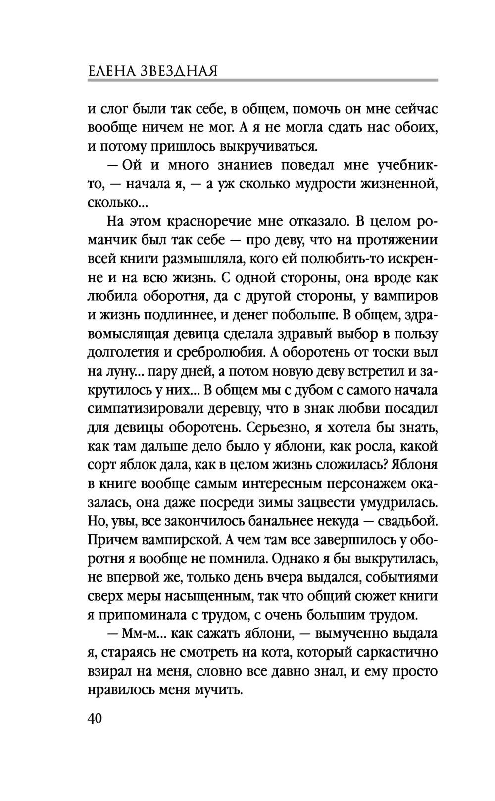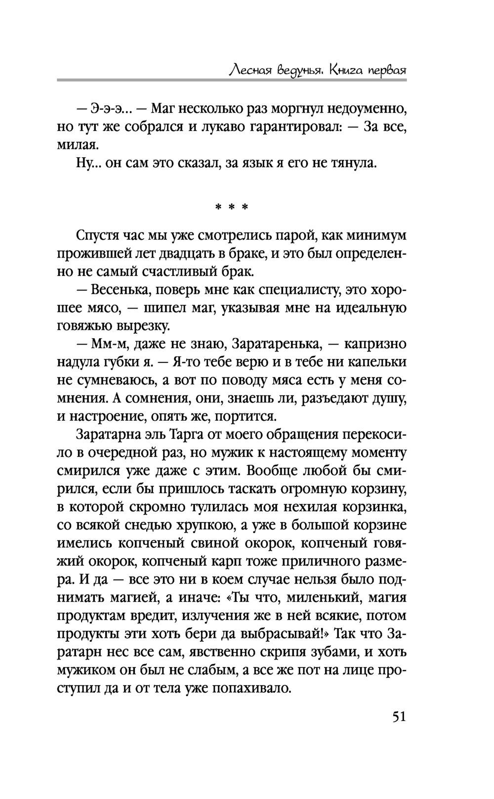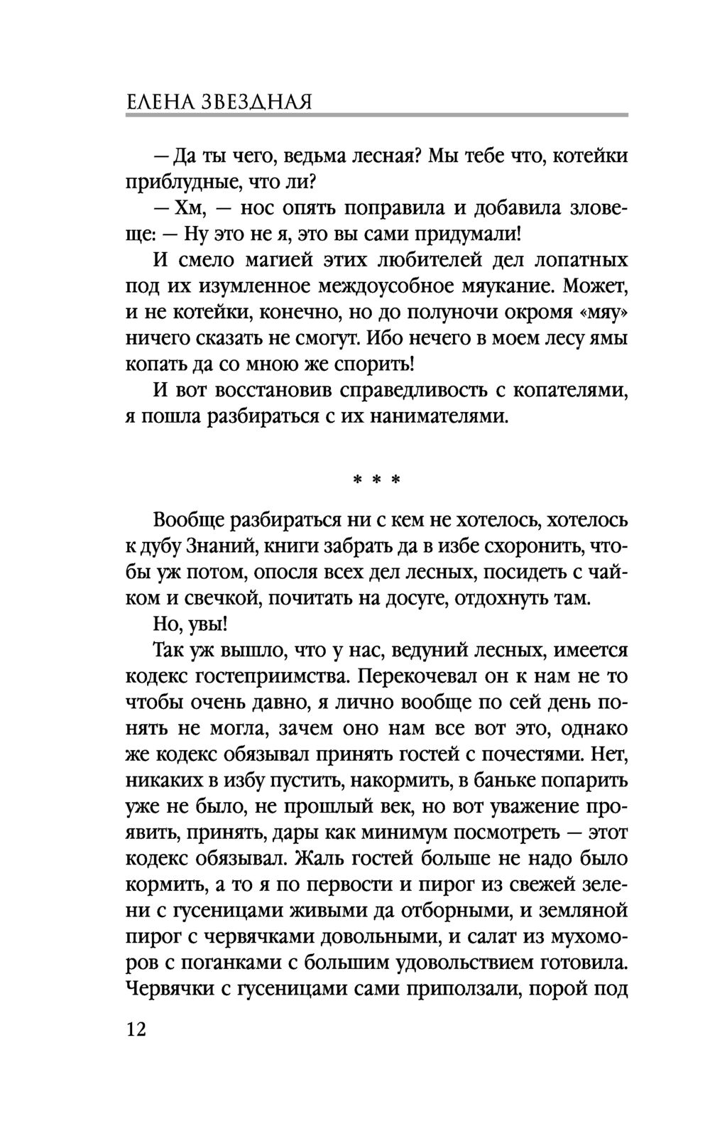 Сказочно живется ведьмочке Весе в Заповедном лесу! И чудеса есть, и с лешим бродит, и русалки присутствуют, не на ветвях, правда, а в реке ближней, зато с весьма привлекательным водяным. И кот Ученый имеется, и ворон Мудрый, и даже дуб Знаний, который вообще-то для этих самых знаний и подготовки к экзаменам полагается, но так-то почитать о приключениях на досуге предпочитает, и Веся это увлечение с ним разделяет. В общем, живет себе ведьмочка, не тужит, серые волки ей верно служат, Силушка Лесная помогает, и горя никто не знает.