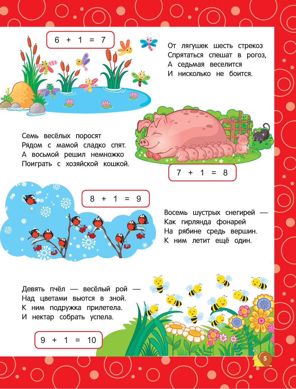 Благодаря пособию ребёнок научится решать примеры и простейшие задачи, писать цифры и математические знаки.