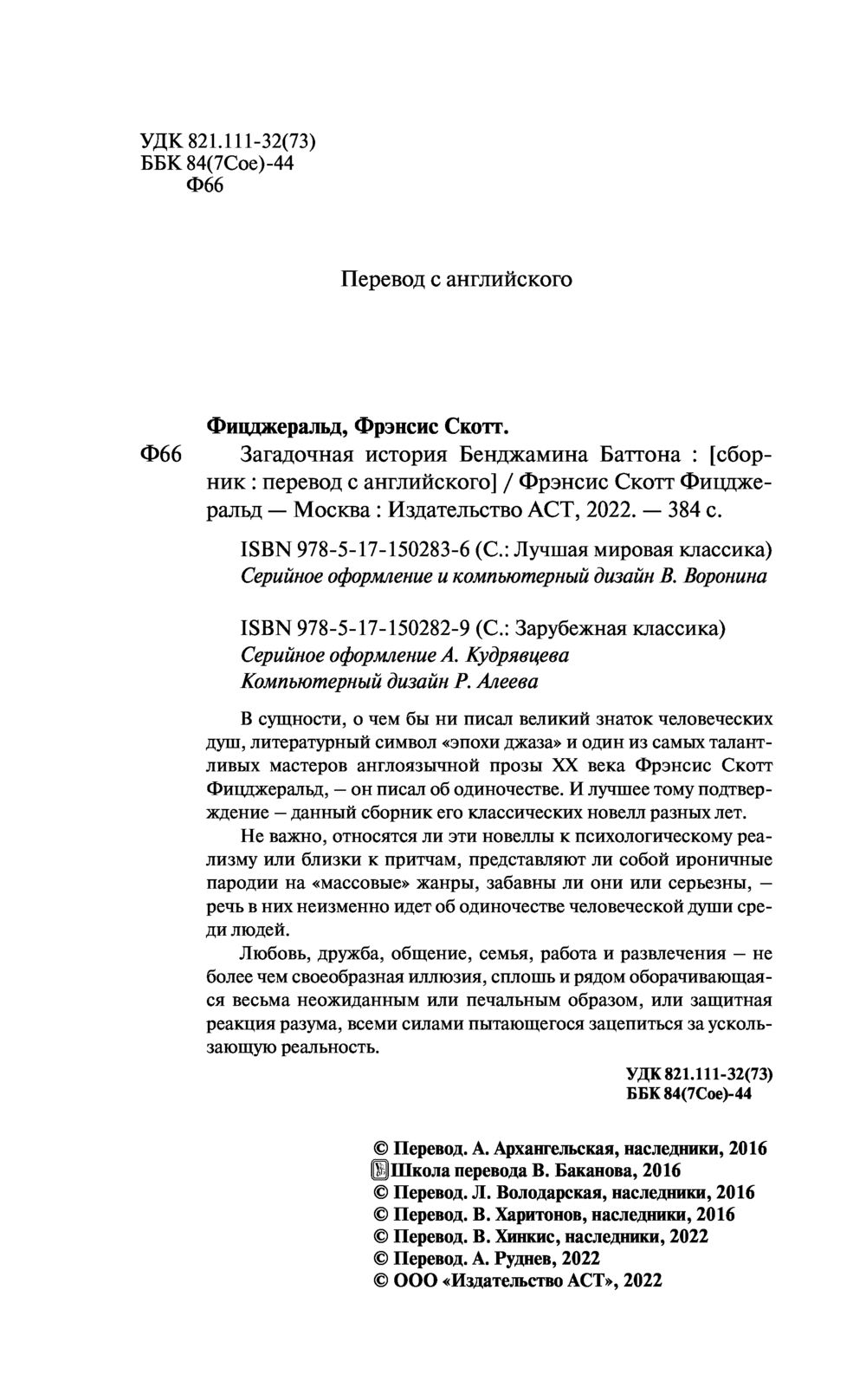 | Название в оригинале | The curios case of Benjamin Button and other stories |