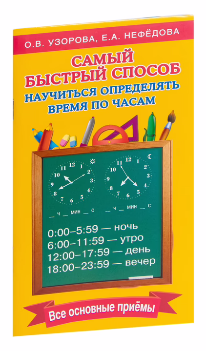 В пособии известных педагогов-практиков О. В. Узоровой и Е. А. Нефёдовой предложены разнообразные задания, которые помогут научиться легко определять время по часам.