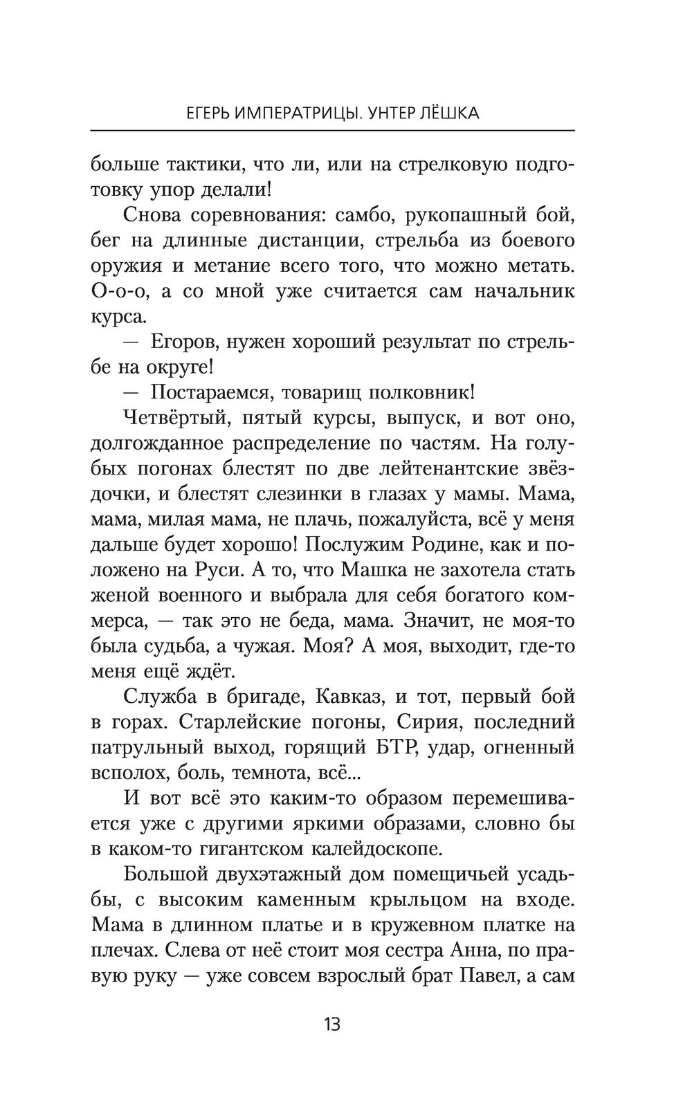 Офицер российского спецназа Алексей, находясь в служебной командировке в Сирии, подрывается на фугасе и попадает в XVIII век, в тело "недоросля" – пятнадцатилетнего сына помещика Егорова. Алёшка, приписанный по традициям своего времени к гвардейскому полку и уже имевший унтер-офицерский чин, проживает в родительском поместье, и своего первого офицерского звания ему нужно ждать более года. В это время Российская империя ведёт ожесточённую войну с Речью Посполитой и Османской империей. Батюшка Алёшеньки, отставной елизаветинский офицер, передаёт ему свой штуцер, трофей, привезённый им после семилетней войны с Пруссией. Именно с этим нарезным и дальнобойным оружием и отправляется в первую русскую армию на Дунай юный унтер-офицер Егоров.