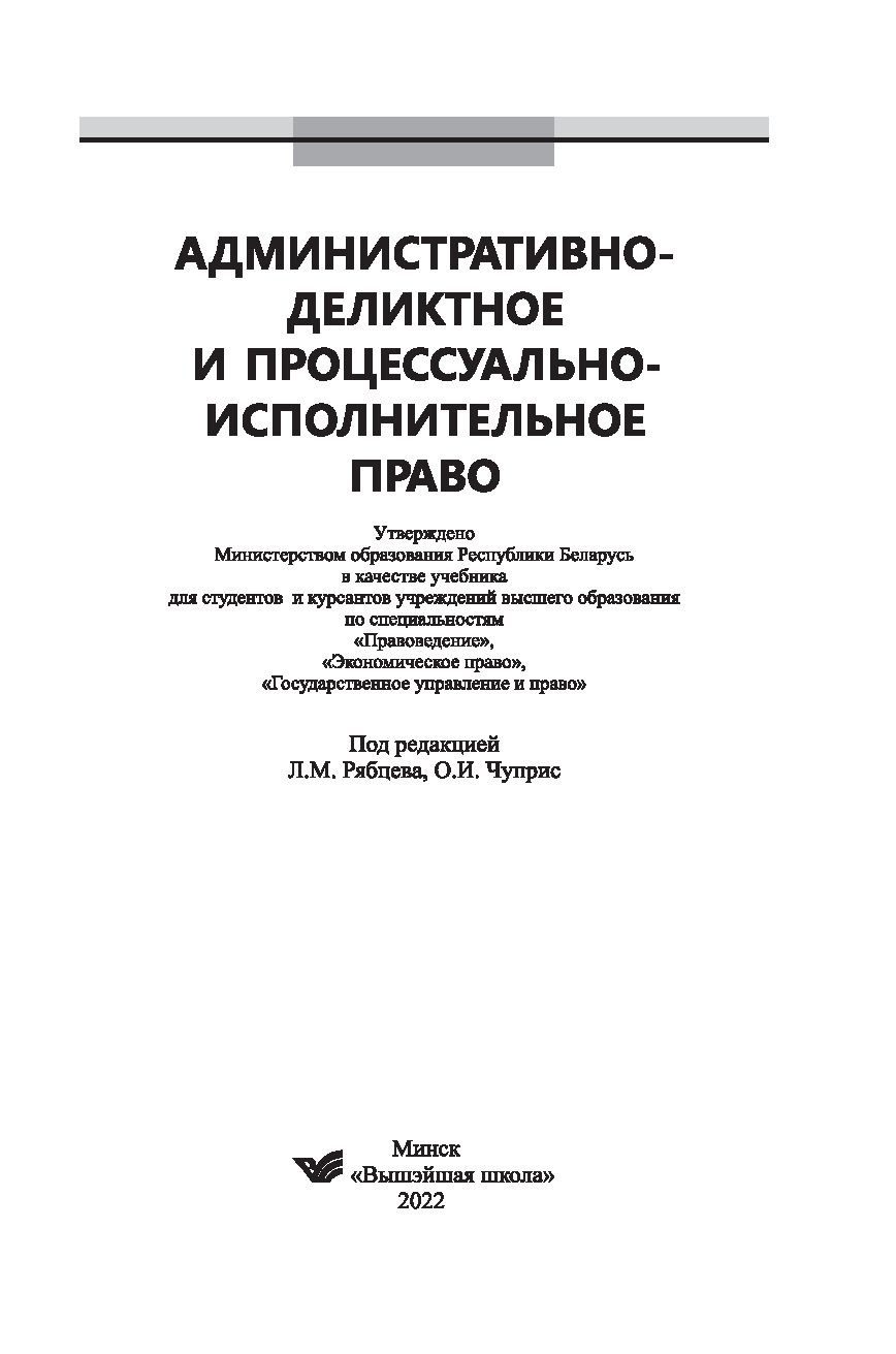 Рассматривается понятие административно-деликтного права, раскрываются вопросы о круге деяний, трактуемых в качестве административных правонарушений об административно-правовом принуждении, понятии административной ответственности и административных взысканиях, административной ответственности за конкретные виды правонарушений. Освещаются вопросы ведения административного процесса по делам об административных правонарушениях и исполнения постановлений о наложении административного взыскания, общие правила применения ключевых норм административно-деликтного и процессуально-исполнительного законодательства по делам об административных правонарушениях.