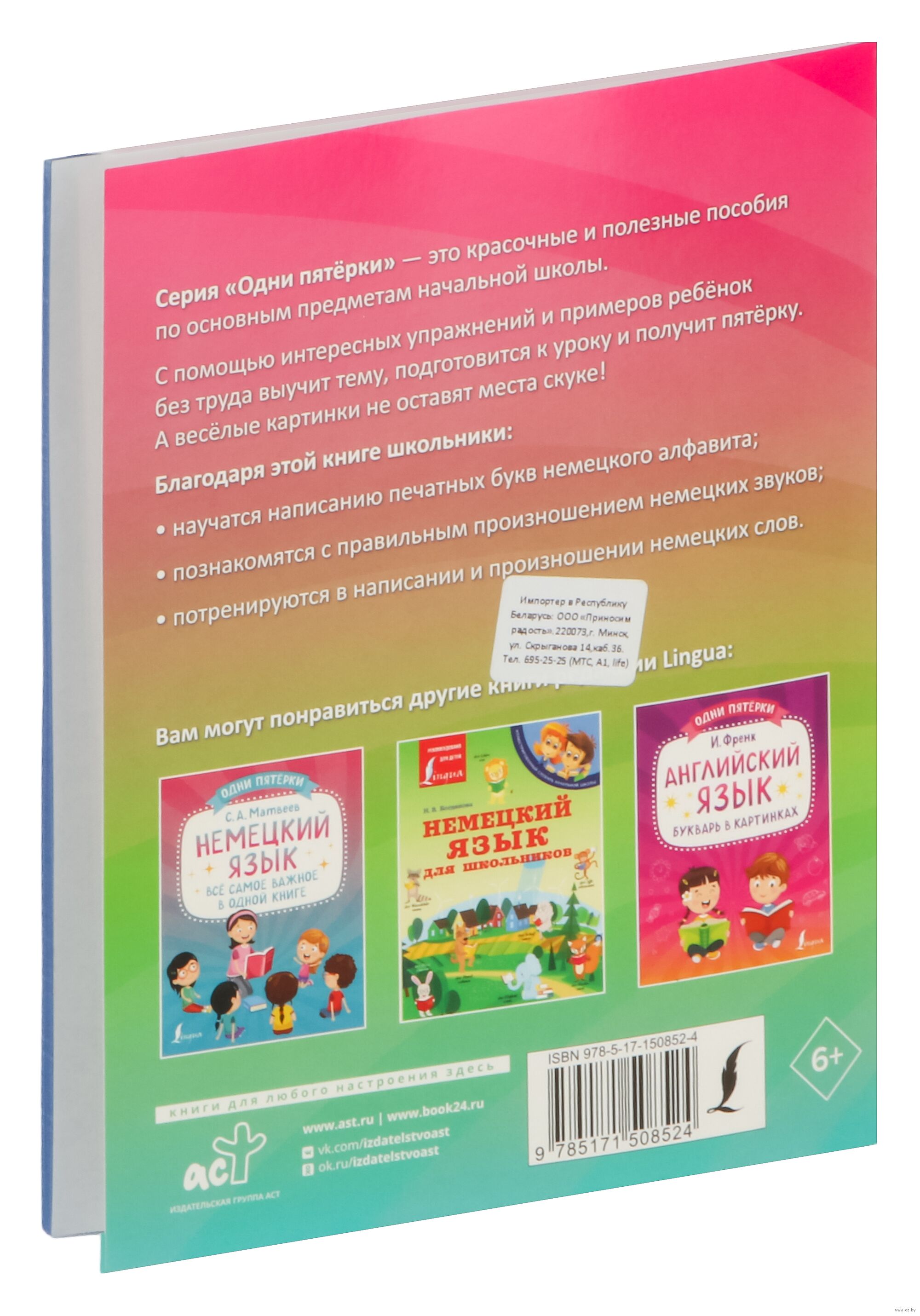 Данное пособие поможет вашему ребёнку сделать первые шаги в изучении немецкого алфавита. К каждой букве даются её краткое описание, несложные примеры с русской транскрипцией для тренировки произношения, а также прописи для улучшения навыков письма. Издание проиллюстрировано яркими картинками, которые вносят игровой элемент в процесс обучения.