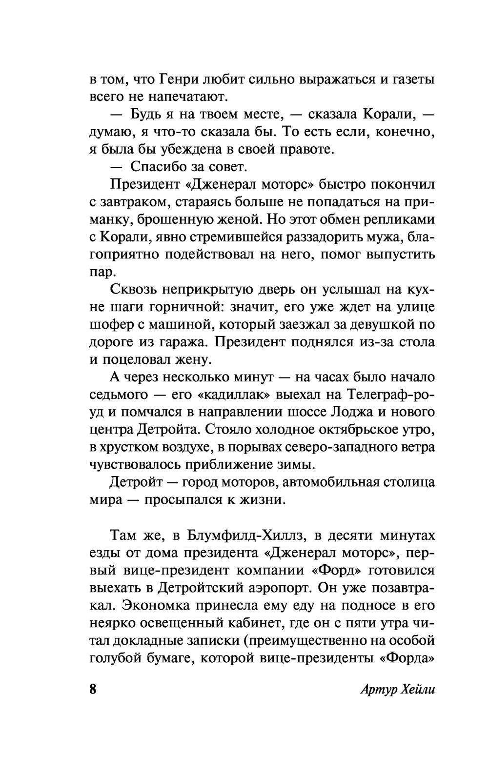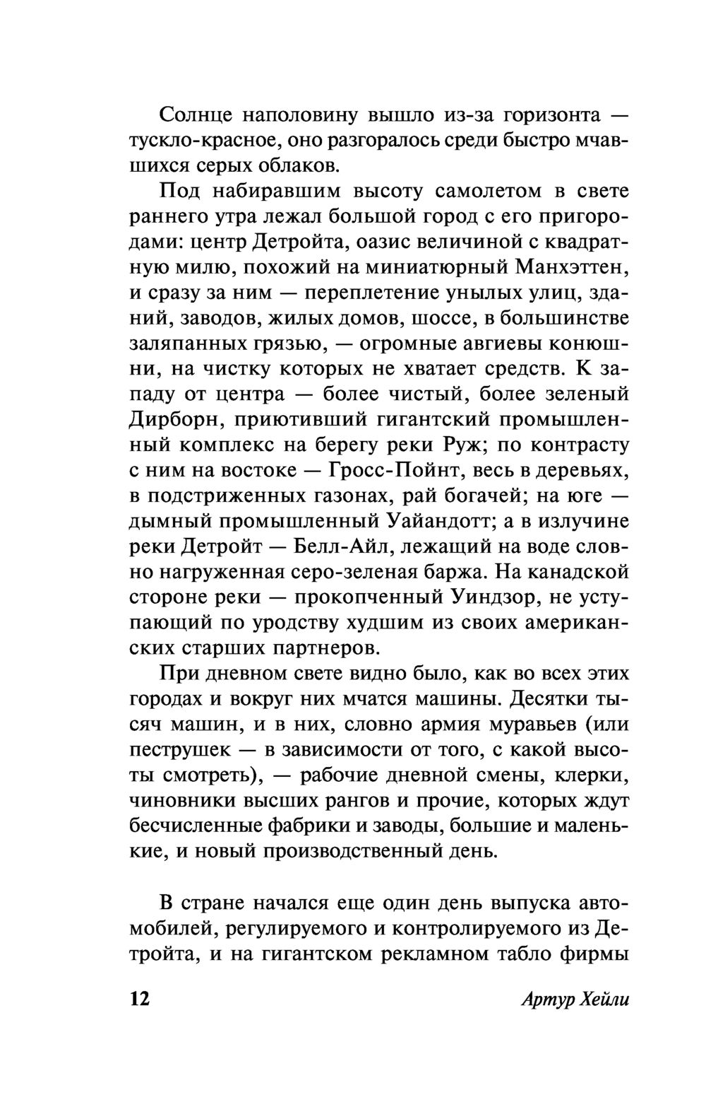 Производственный роман про мир гигантской автомобильной компании, мир подобный безупречно работающему механизму, где люди похожи на детали. Но порой страсти бушуют, захлестывает жажда любви, власти, успеха и денег. В результате может случится сбой даже идеального механизма. Хейли всегда описывает просто, подробно и увлекательно. И эта книга не стала исключением. В сюжете и драма, и любовные переживания. Автор мастер раскрутить маленькое событие в цунами. Люблю его, чего и вам желаю.