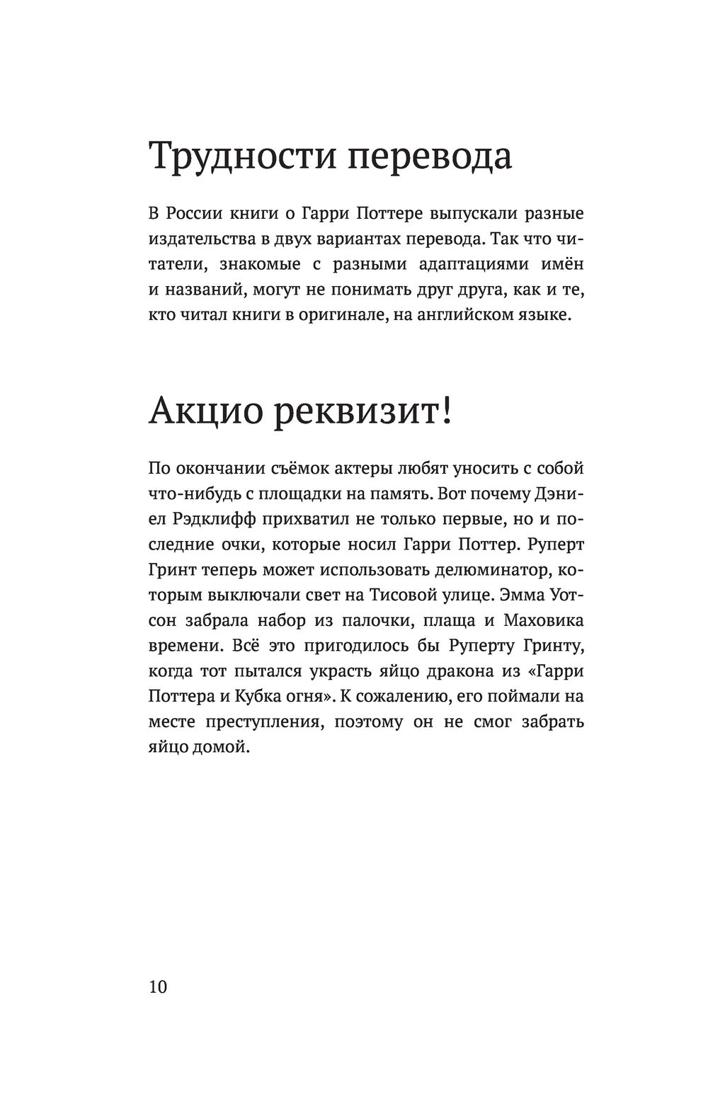 Это издание содержит почти 400 фактов на любой вкус как о волшебниках и мире волшебства, так и о книгах, фильмах, актёрах и, разумеется, самом авторе! Весёлые и грустные, странные и ошеломляющие факты – даже самый заядлый поклонник "Гарри Поттера" найдёт здесь что-то новое.