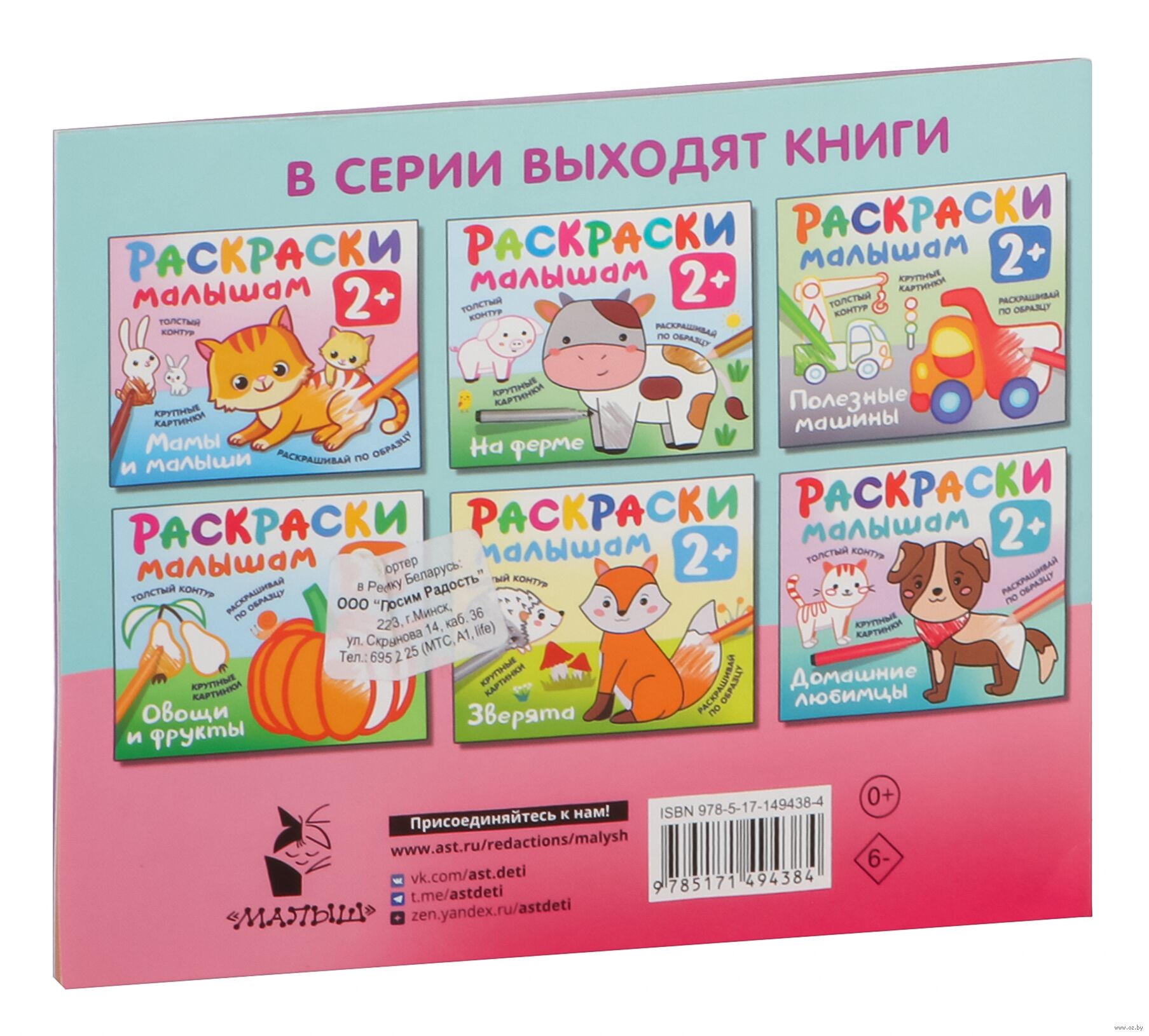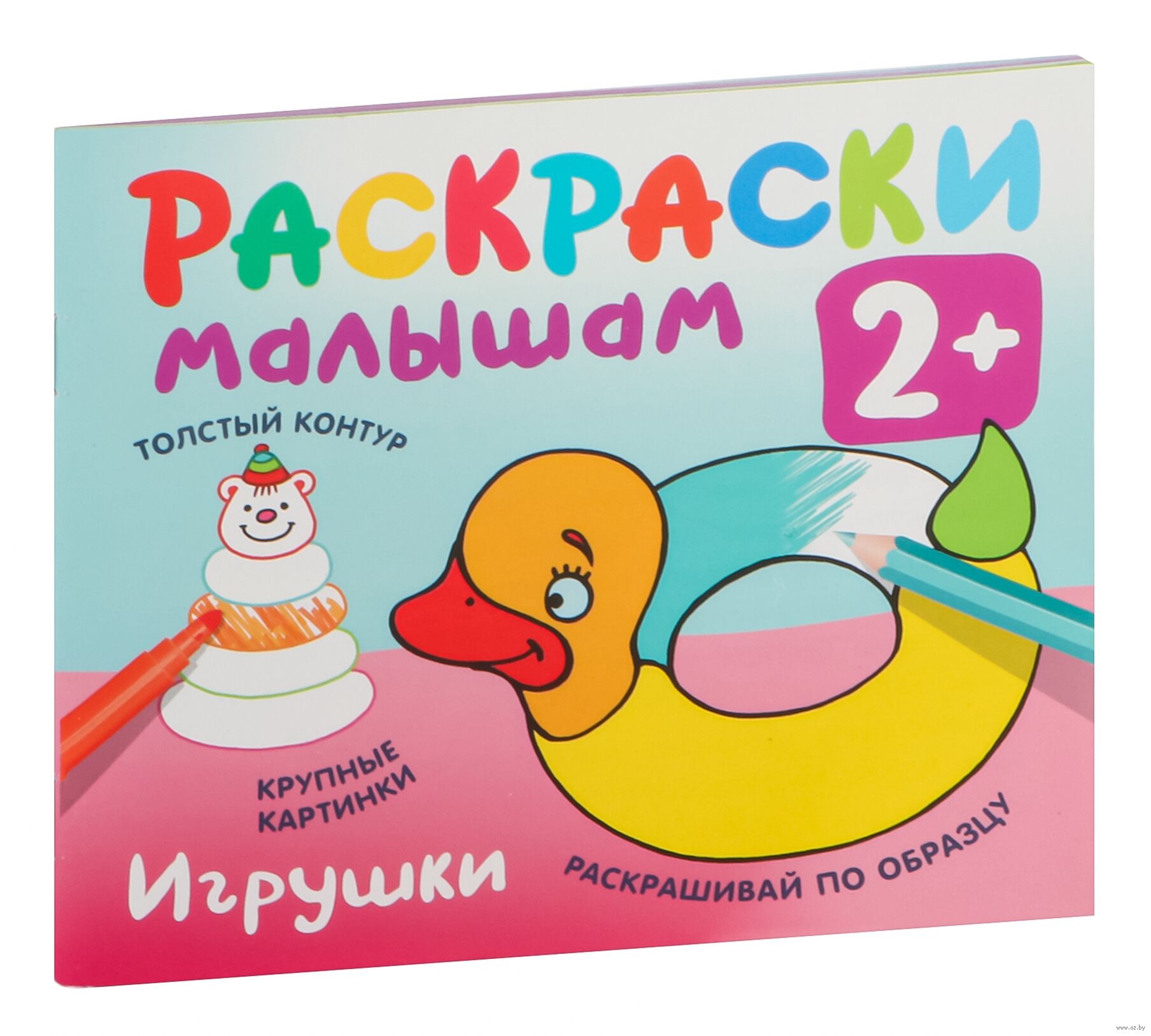 Раскраска для самых маленьких художников – малышей в возрасте от 2 лет, которые еще только учатся держать в руках карандаш или фломастер. На страницах книжки – вертушка, колокольчик, уточка, пирамидка. Веселые картинки можно раскрасить по образцу цветными карандашами, фломастерами, мелками, пальчиковыми красками. Увлекательное и полезное занятие поможет ребенку раскрыть свой творческий потенциал, разовьет зрительное восприятие, внимание и мелкую моторику. Раскрашиваем и по цветным образцам.
