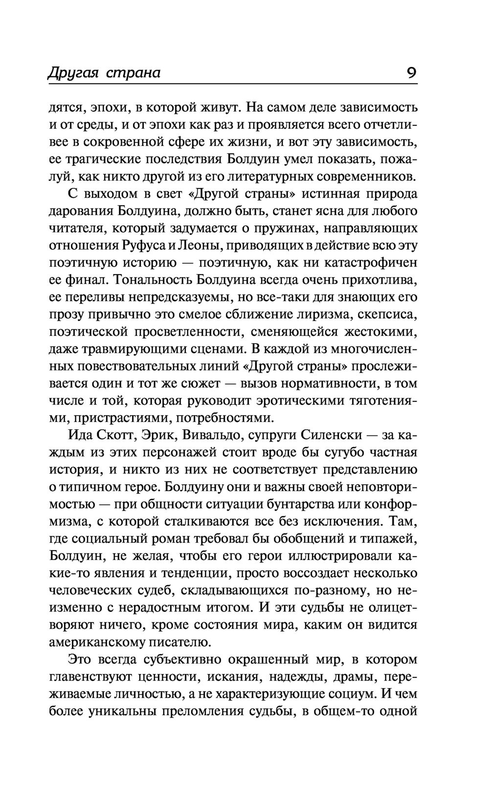 "Другая страна" – одно из лучших произведений Джеймса Болдуина, писателя предельно искреннего, не боявшегося саморазоблачения и поднимавшего темы, о которых не принято говорить. "Нет ничего на свете выше любви. Любовь оправдывает все" – вот неизменный девиз этого ни на кого ни похожего, удивительного писателя.