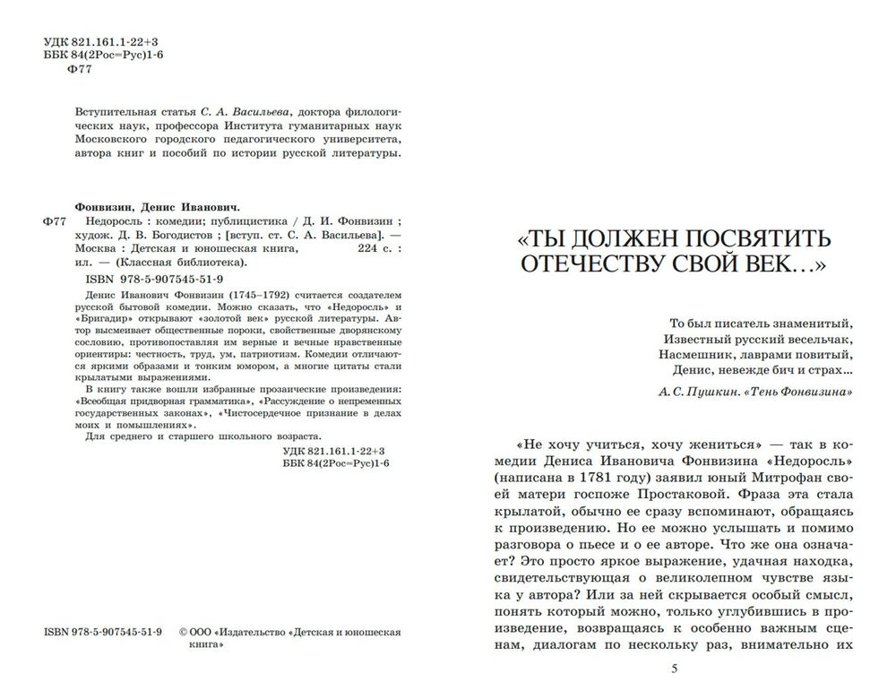 Денис Иванович Фонвизин (1745-1792) считается создателем русской бытовой комедии. Можно сказать, что "Недоросль" и "Бригадир" открывают "золотой век" русской литературы. Автор высмеивает общественные пороки, свойственные дворянскому сословию, противопоставляя им верные и вечные нравственные ориентиры: честность, труд, ум, патриотизм. Комедии отличаются яркими образами и тонким юмором, а многие цитаты стали крылатыми выражениями.