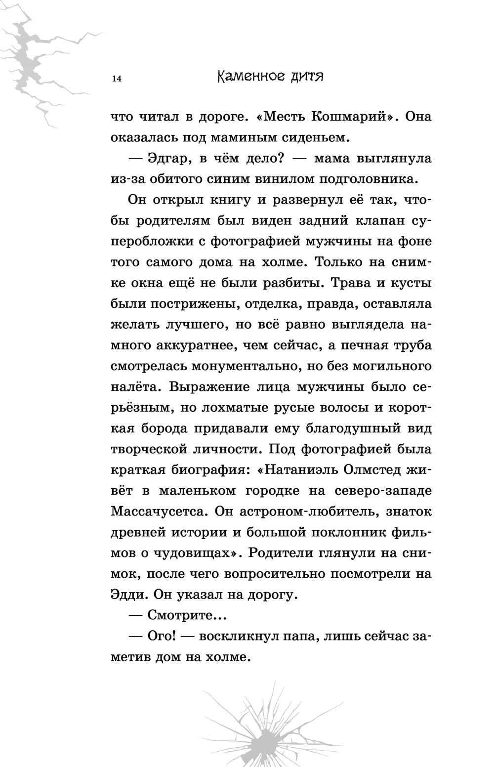 Эдди не ждал ничего хорошего от переезда в Гейтсвид. В разбитых окнах не горит свет, а лужайки заросли... Но всё изменилось, когда мальчик узнал, что его любимый писатель страшных историй Натаниэль Олмстед жил в Гейтсвиде! Согласно местным поверьям, творчество бесследно пропавшего много лет назад писателя накликало на город несчастья, а истории Олмстеда опасны... Новые друзья отводят Эдди в Безымянный лес и показывают местную достопримечательность – статую девочки. Точь-в-точь такую же, как в книге Олмстеда, – Каменное дитя! Никто не знает, откуда она взялась и что обозначает, но горожане поговаривают, что в лесу к тому же обитает жуткое привидение, Женщина в чёрном. А мама Эдди как раз взялась писать роман о... Темной госпоже. Не слишком ли странное совпадение? Эдди уверен, что ответы на все вопросы связаны со статуей...