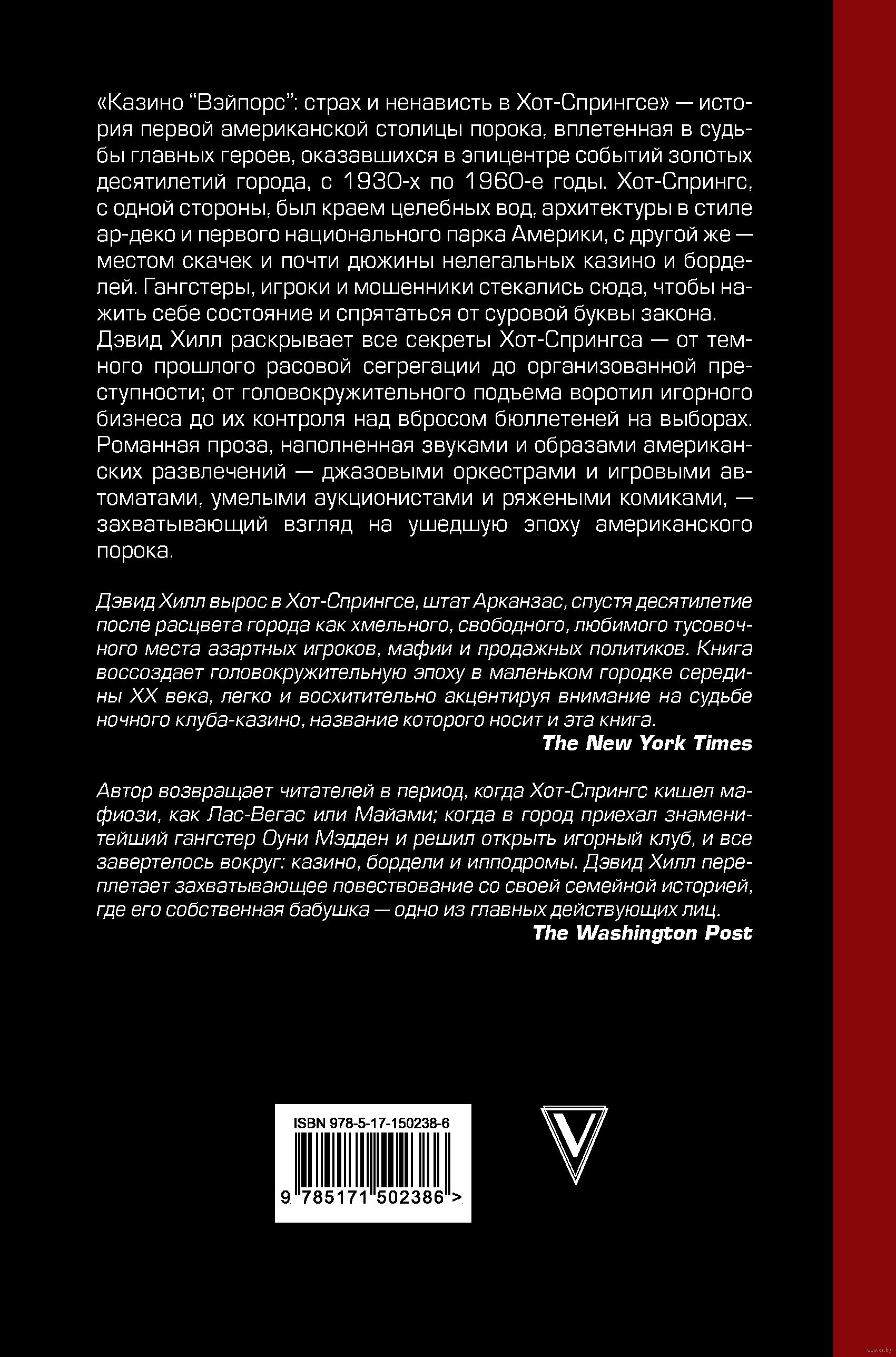 Хот-Спрингс, с одной стороны, был краем целебных вод, архитектуры в стиле ар-деко и первого национального парка Америки, с другой же – местом скачек и почти дюжины нелегальных казино и борделей. Гангстеры, игроки и мошенники: они стекались сюда, что-бы нажить себе состояние и спрятаться от суровой руки закона. Дэвид Хилл раскрывает все карты города – от темного прошлого расовой сегрегации до организованной преступности; от головокружительного подъема воротил игорного бизнеса до их контроля над вбросом бюллетеней на выборах. Романная проза, наполненная звуками и образами американских развлечений – джазовыми оркестрами и игровыми автоматами, умелыми аукционистами и наряженными комиками – это захватывающий взгляд на ушедшую эпоху американского порока.