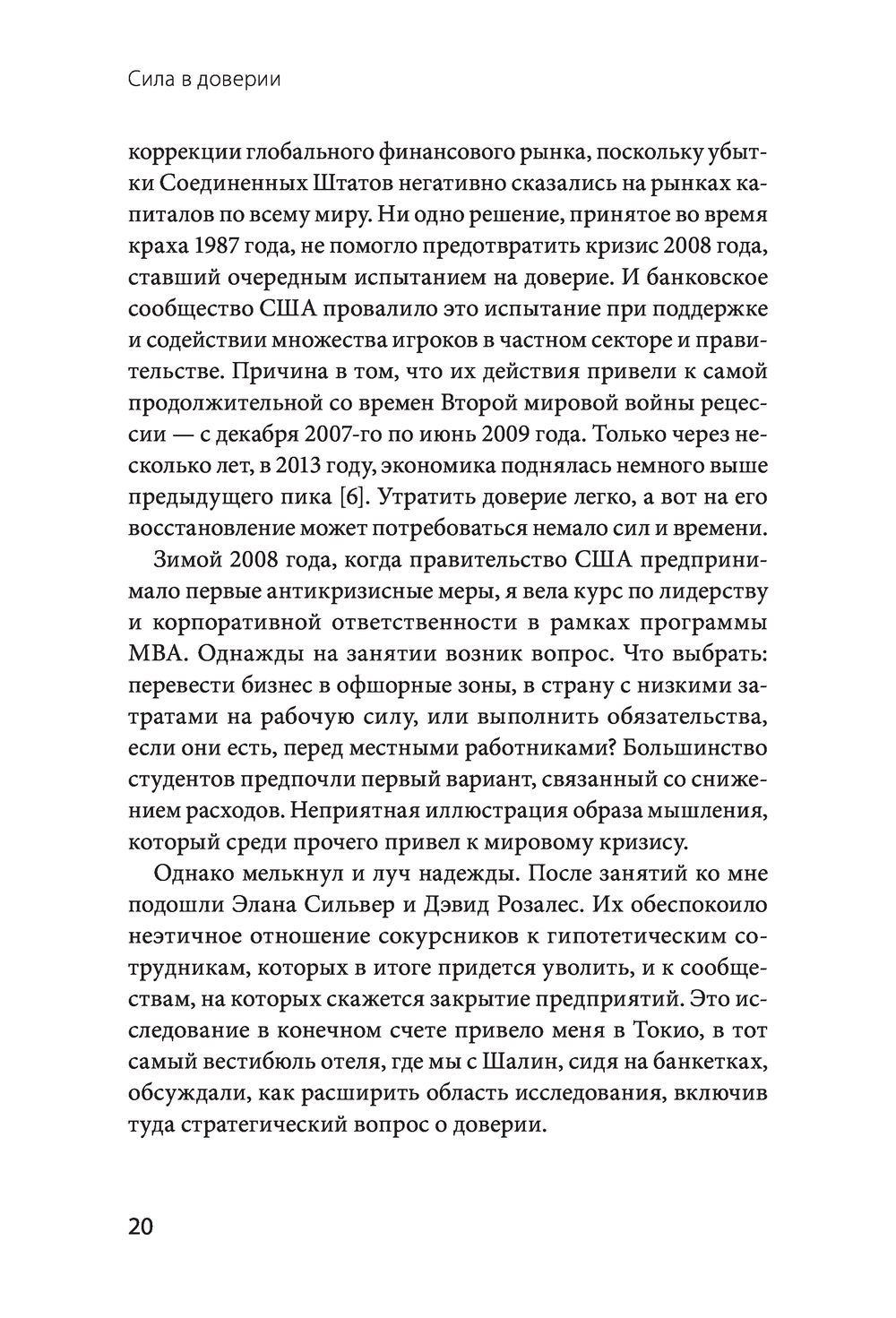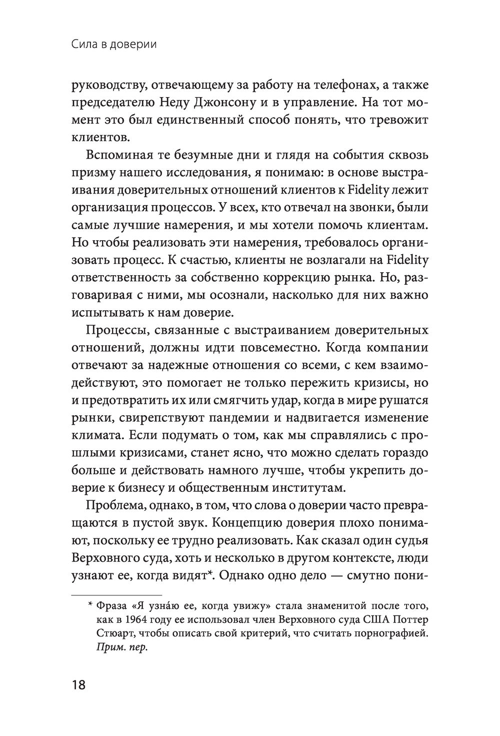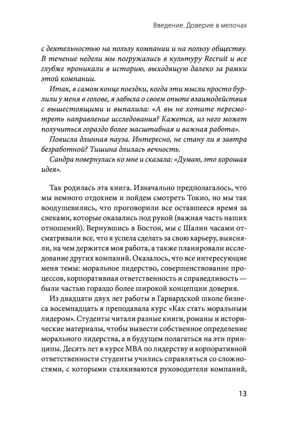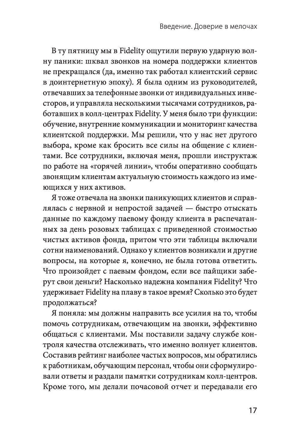 Сандра Сачер и Шалин Гупта убедительно доказывают, что доверие строится изнутри. Оно возникает благодаря тому, что компания изначально честна по отношению к клиентам и сотрудникам: создает качественные продукты и услуги, открыта к общению, справедливо относится к людям и берет на себя ответственность за последствия принимаемых решений.