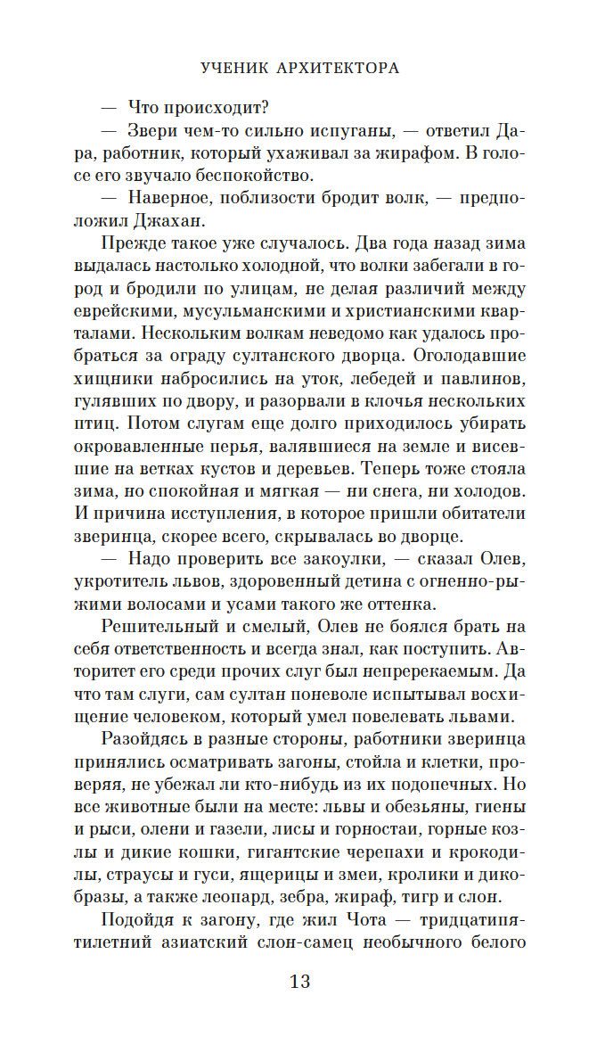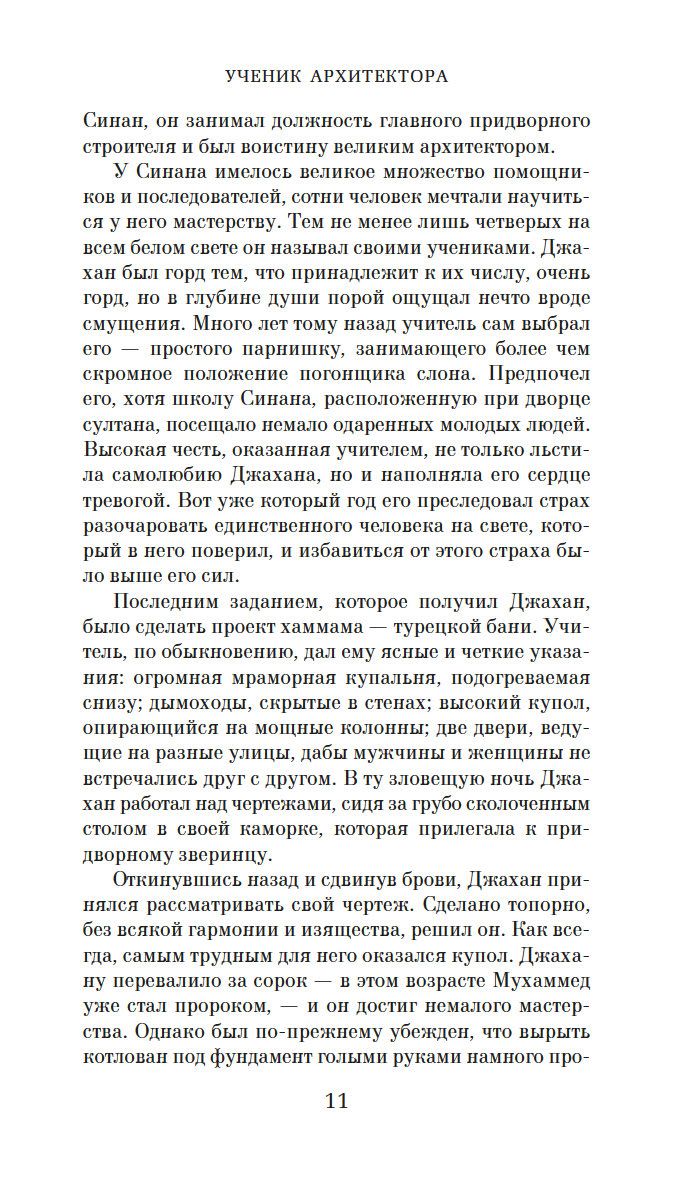 XVI век. Османская империя. Эпоха Сулеймана Великолепного. Волею судьбы двенадцатилетний Джахан и его подопечный, белый слоненок по кличке Чота, оказываются в Стамбуле, при дворе могущественного султана. Здесь Джахану суждено пережить множество удивительных приключений, обрести друзей, встретить любовь и стать учеником выдающегося зодчего – архитектора Синана. Удивительный рассказ о свободе творчества, о схватке между наукой и фанатизмом, о столкновении любви и верности с грубой силой.